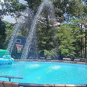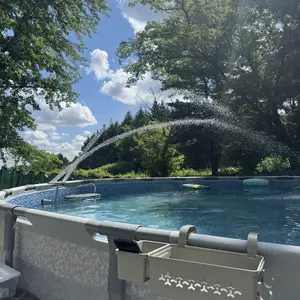 15 min install, and work perfectly. Two spray bars pushing water up into the air, and the Whirlpool help to keep water moving better. 24’ round, 5’ deep pool