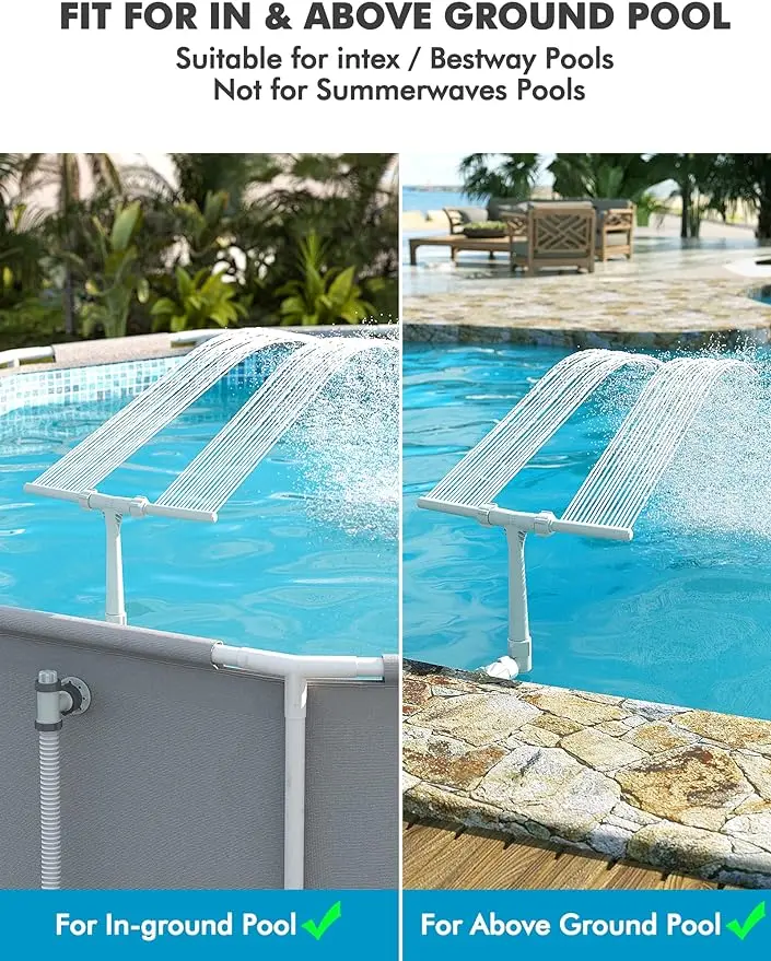 I’m obsessed with this fountain! I bought the one for “above ground/in ground” pool and the install was easy. Helpful hint, turn the pump off and close the outlet valve before you take off the jet cap. Otherwise the cap WON’T come off! The sound is so relaxing and overall this was a great purchase!