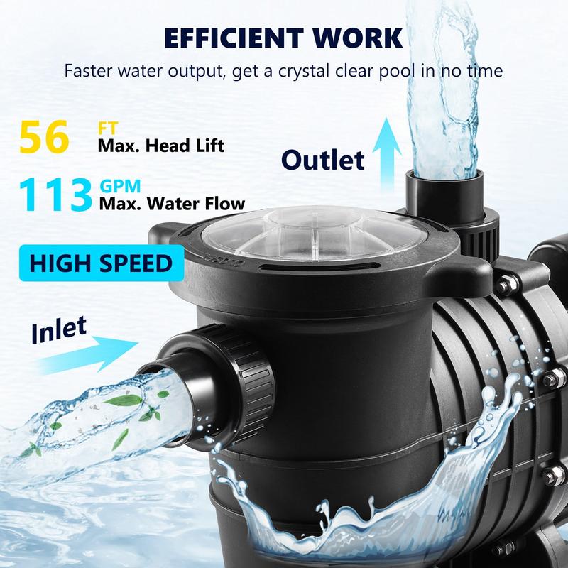 ·Wide Application: The speedy pool pump is ideal for above-ground pools, hot tubs, thermal springs, spas, and irrigation systems. However, it should not be used with storable pools. It will bring you a clean and clear water environment, so you enjoy your pool all summer long.