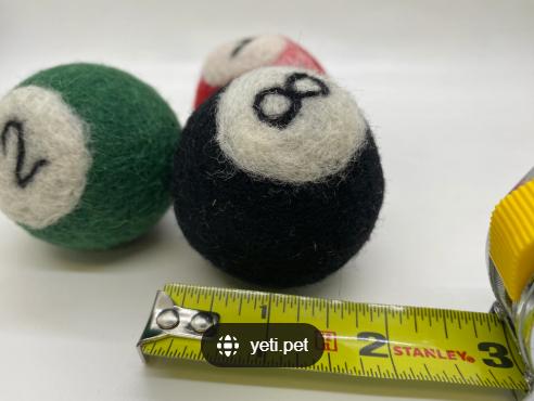 Our Yeti Pool Rattle Balls are handmade from 100% all-natural New Zealand Merino wool. It combines a soft felted wool texture, a simple design and a rattle sound that make them an ideal toy for cats and small dogs.