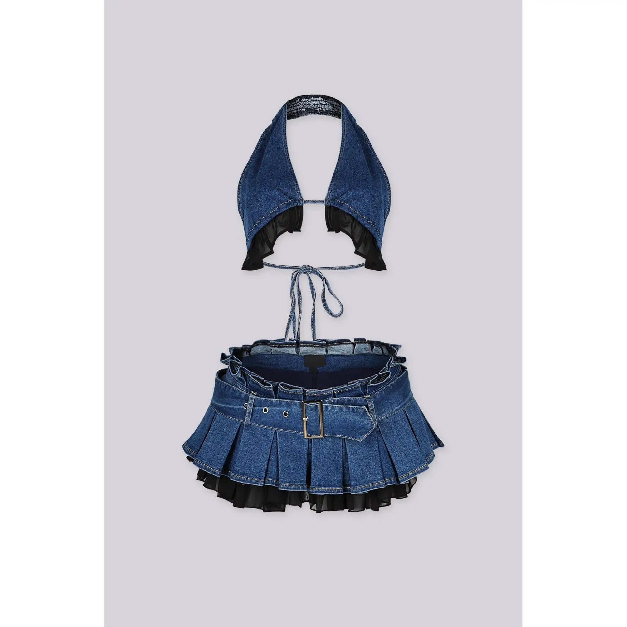 5. Pop Dat Denim Bra Top & Skirt SET