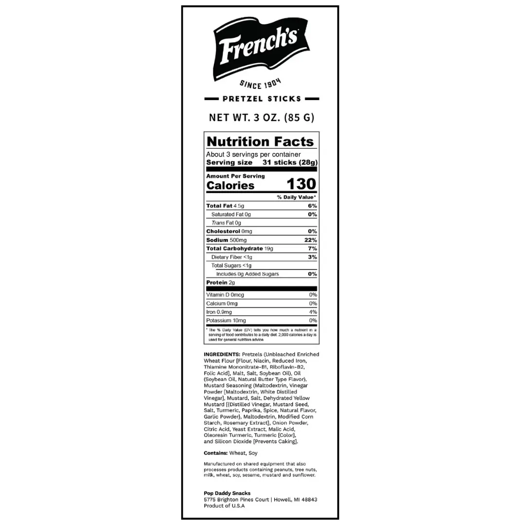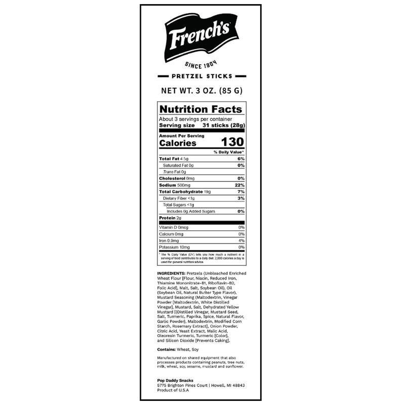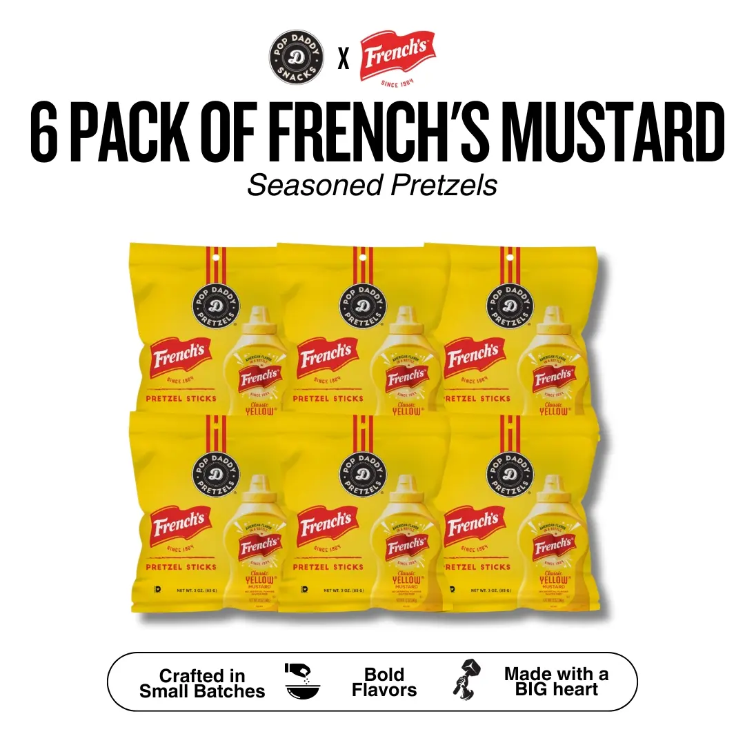 I'm a repeat customer for pop, daddy. I used to get the yellow mustard. But they have the French's mustard and so I thought I would try them. Can't really taste the difference, they really good