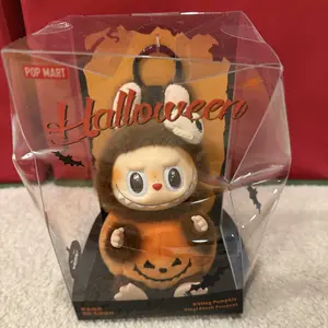 POP MART Labubu Happy Halloween Party Series Sitting Pumpkin Vinyl Plush Pendant. Approximately 5.9" tall (not including hanging loop). Authentic.