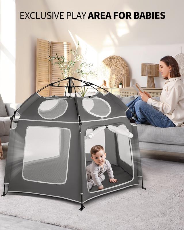 ·Safe & Breathable Mesh Walls High-density mesh offers full visibility and excellent airflow, keeping your baby safe, cool, and bug-free.