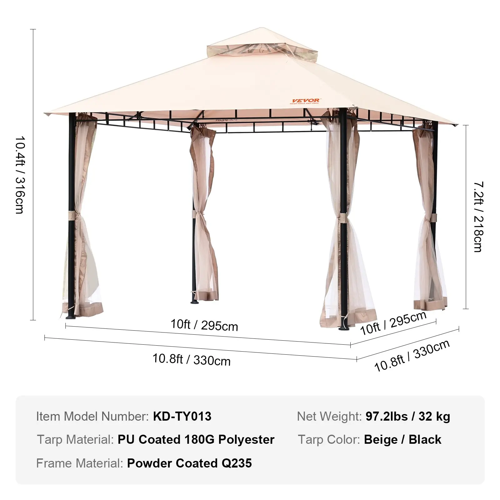 Are you ready to party? Experience the outdoors with comfort and style using our durable and dependable gazebo. Crafted from 250D Oxford cloth with a PU coating, the VEVOR patio gazebo offers UPF 50+ protection, wind and rain resistance, and effective bug control.