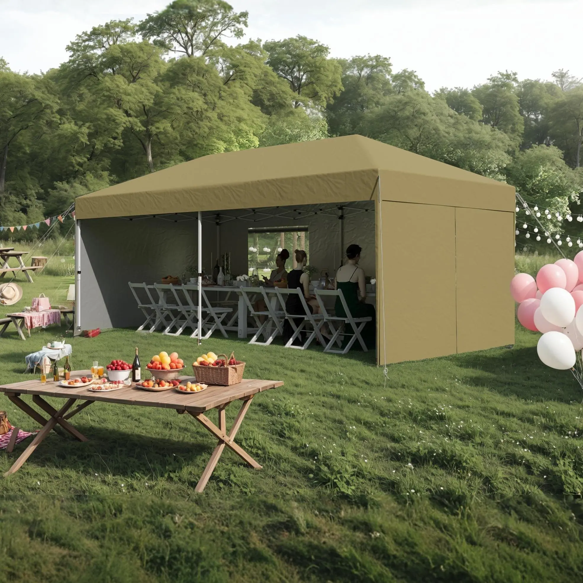 · Large Area: This 10'x10' offers 100 square feet of , comfortably 8 to 10 people. It's ideal for family reunions, get-togethers with friends, and outdoor events, providing ample space for socializing and relaxation.