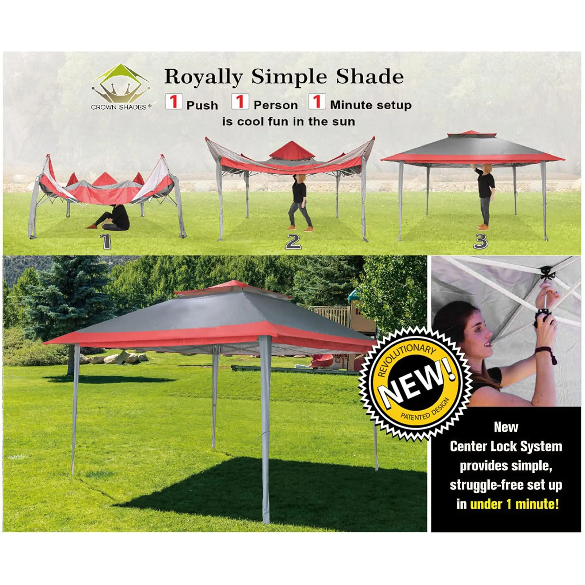 ·[EASIEST SET UP]: Patented one push center lock technology – central hub locks out all four legs with a single push. Then use the soft pinch-free buttons to set the leg height. Next generation canopy designed so two people can set it up in seconds with no tools necessary.