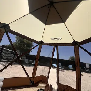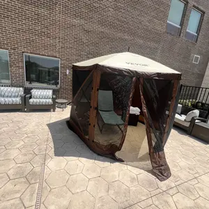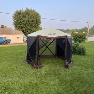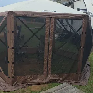5. VEVOR Camping Gazebo Screen Tent, TikTokShopBlackFriday, 12*12ft, 6 Sided Pop-up Canopy Shelter Tent with Mesh Windows, Portable Carry Bag, Stakes, Large Shade Tents for Outdoor Camping, Lawn and Backyard, Brown/Beige