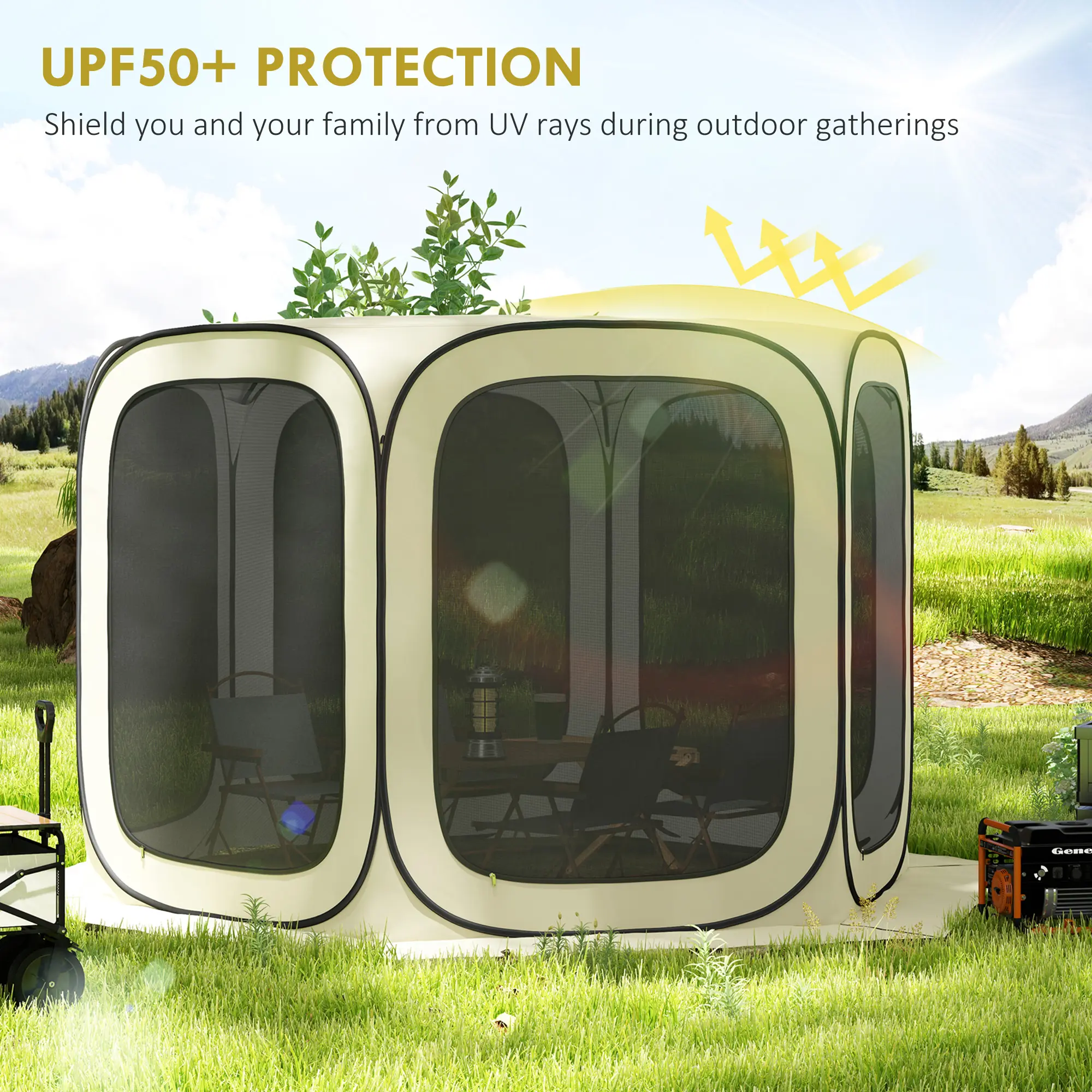 Great for shade and keeping bugs away. I don’t like zipping and unzipping to go in and out constantly. Maybe one opening with the magnet closure as an option would be great.