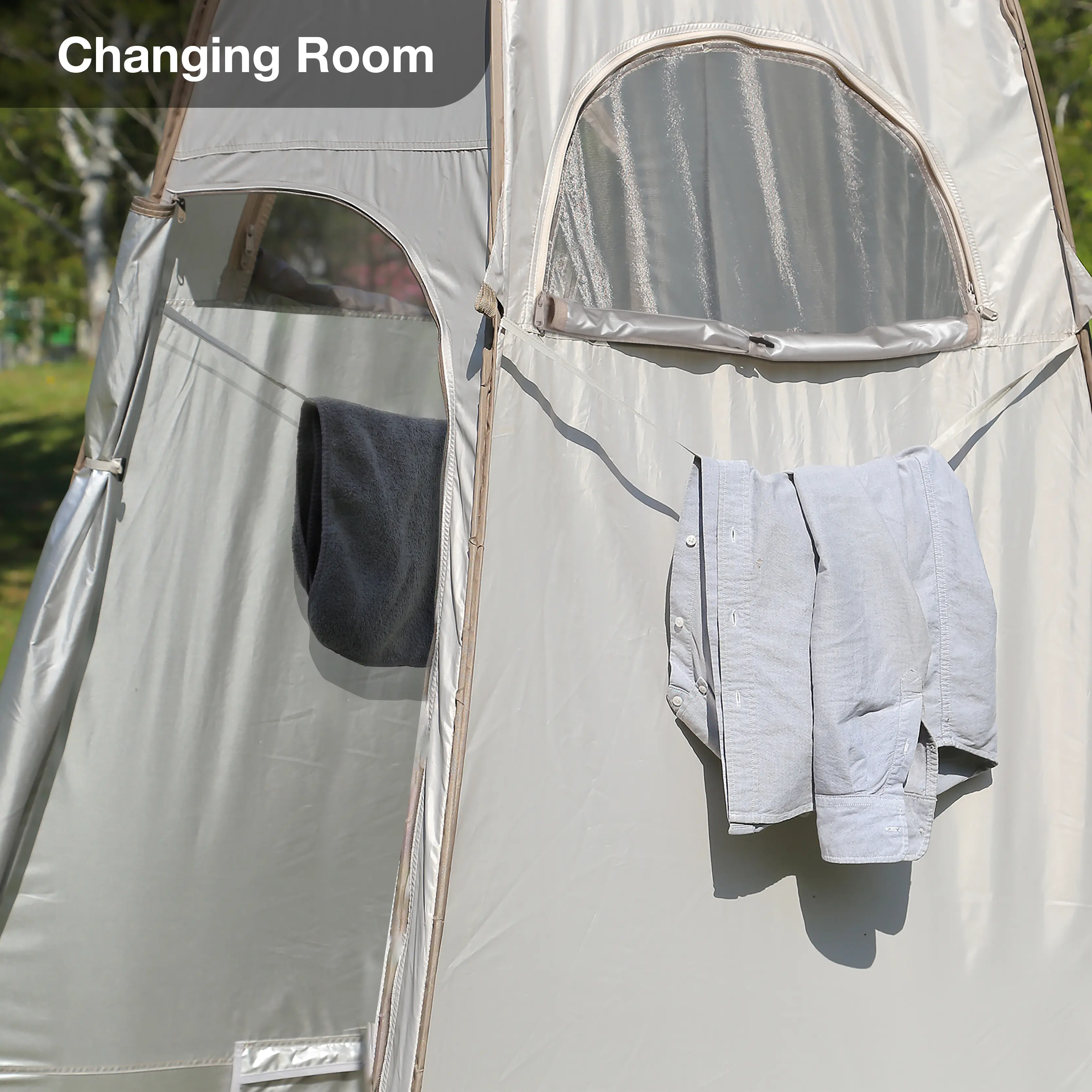 ·【MULTI-USE WINDOWS】 This window has great function, the netting top and window not only give you a wider view, but also let the cool air in and keep insects out, while the outer layer could protect your privacy when closed. Get the perfect outdoor experience with this camping shower tent!