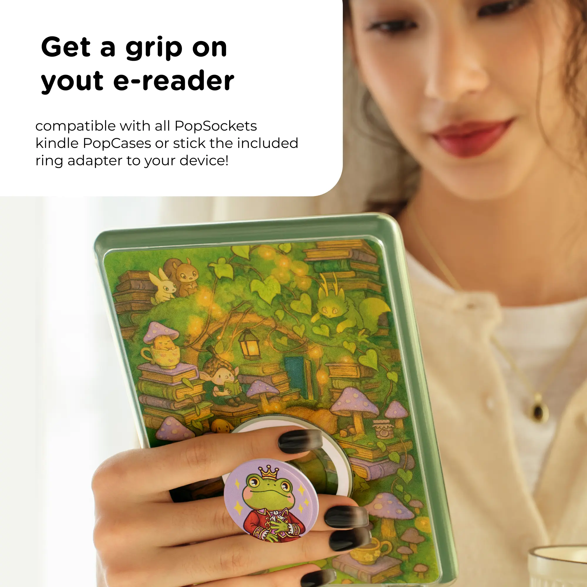 Cute bookish popsocket! Sturdy, adds grip, and shows off my love for reading. Perfect for one-handed page turning!