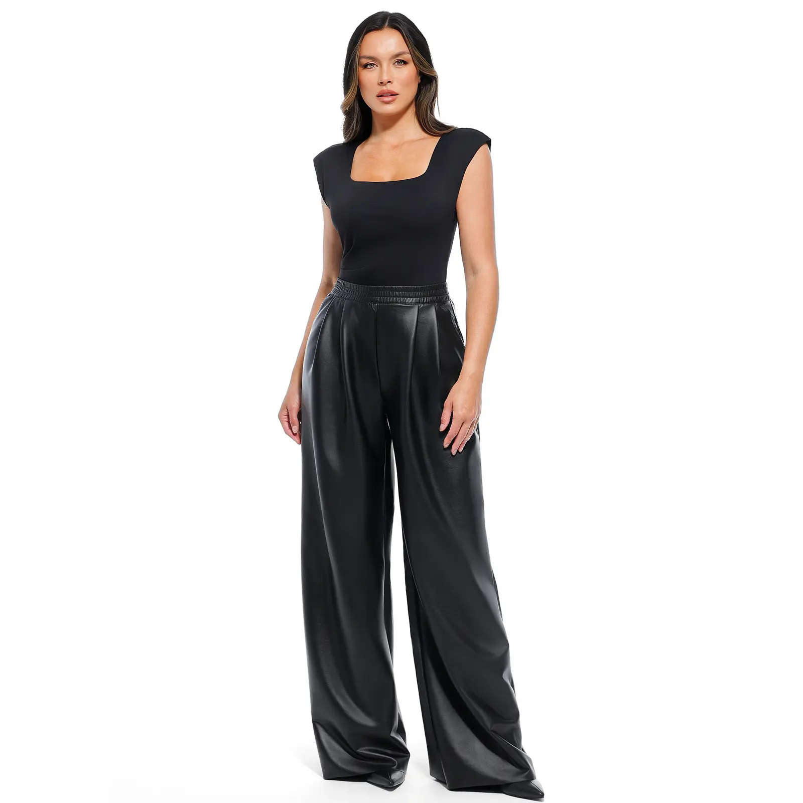 Made from 285D poly-ammonia faux leather with a milk-silk base for ultra-softness. Knit with polyester-wrapped micro-spandex for optimal stretch and recovery, with an inner mesh lining for breathable, flexible shaping that moves with your body.