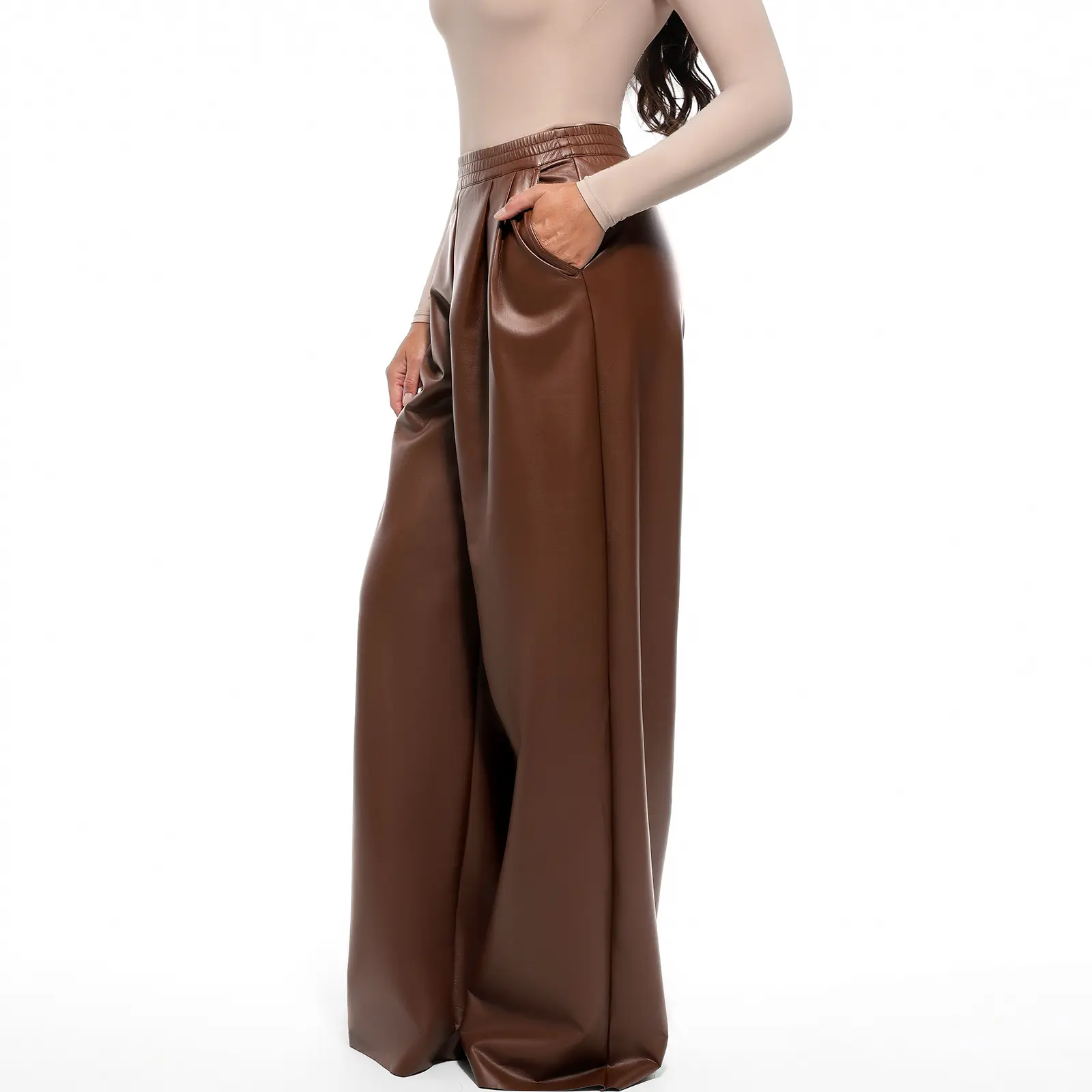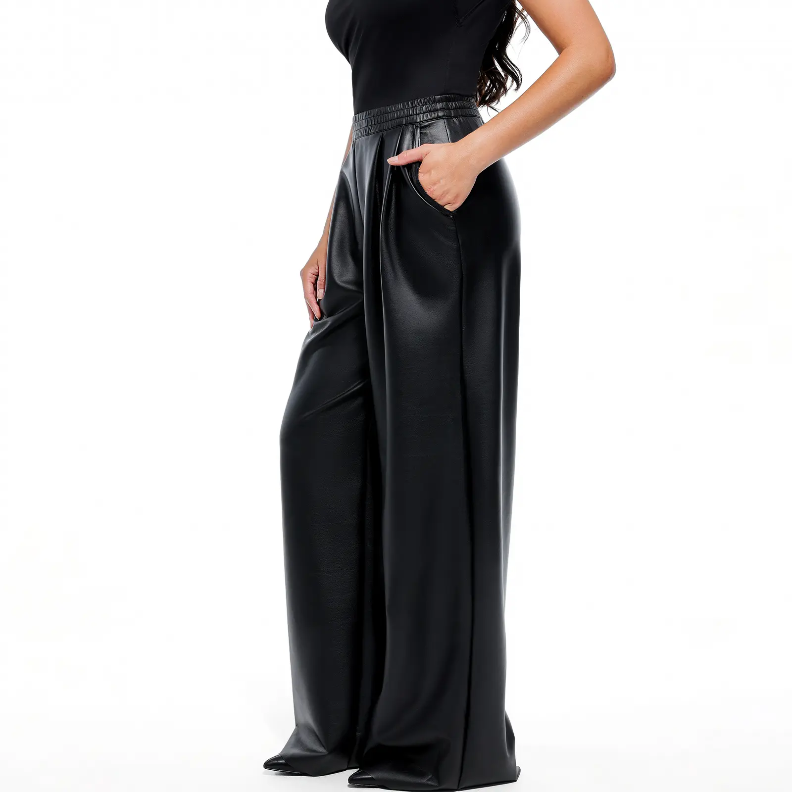 Double-pleated front waistbands create a structured, polished look reminiscent of tailored suit pants. The relaxed straight-leg cut flatters all figures, skimming problem areas while maintaining a clean silhouette. Reinforced hem stitching allows customizable length for personalized styling.
