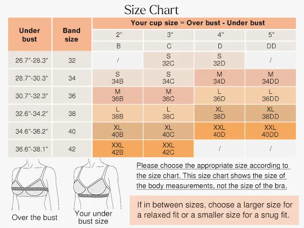 Very soft bra. I wear a 38 DD and X-Large fit perfect. Just had to adjust straps for a more push up look. Most comfortable bra I’ve ever owned