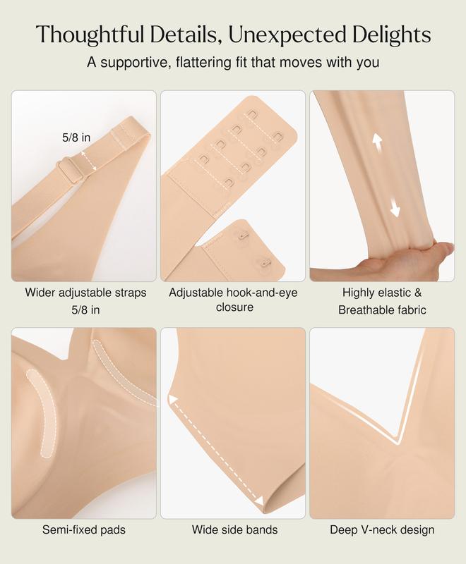 High-elastic yarn and butter-soft fabric create a skin-friendly feel. The material offers gentle comfort, making it perfect for extended wear. Enjoy a seamless, smooth finish that ensures a subtle, universally flattering look. Suitable for various occasions, enhancing your natural beauty without being noticeable.