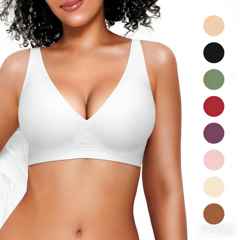 Built-in one-piece molded cups and widened underbust structure ensure all-day comfort. This design provides a naturally contoured fit, combining comfort with strong support. Ideal for those seeking secure, wire-free wear. Experience the difference with every step.