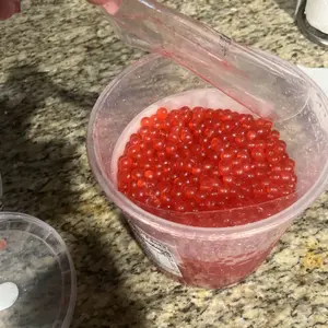 Tea Zone Popping Pearls, the most popular flavors in the US market are perfect for any boba shop or as a topping on drinks, frozen yogurt, or other desserts. Popping pearls, also known as popping boba or bursting boba, are liquid-filled balls with the essence and goodness of a juicy burst of flavor. A little smaller in size than the regular tapioca boba, popping pearls leave your customer’s taste buds satisfied with a gush of fruit flavor. The vibrant dark red color of the boba jelly balls makes your recipe look delicious. Our popping pearls will also help your food look creative and trendy that will lure customers in and keep them coming back for more.