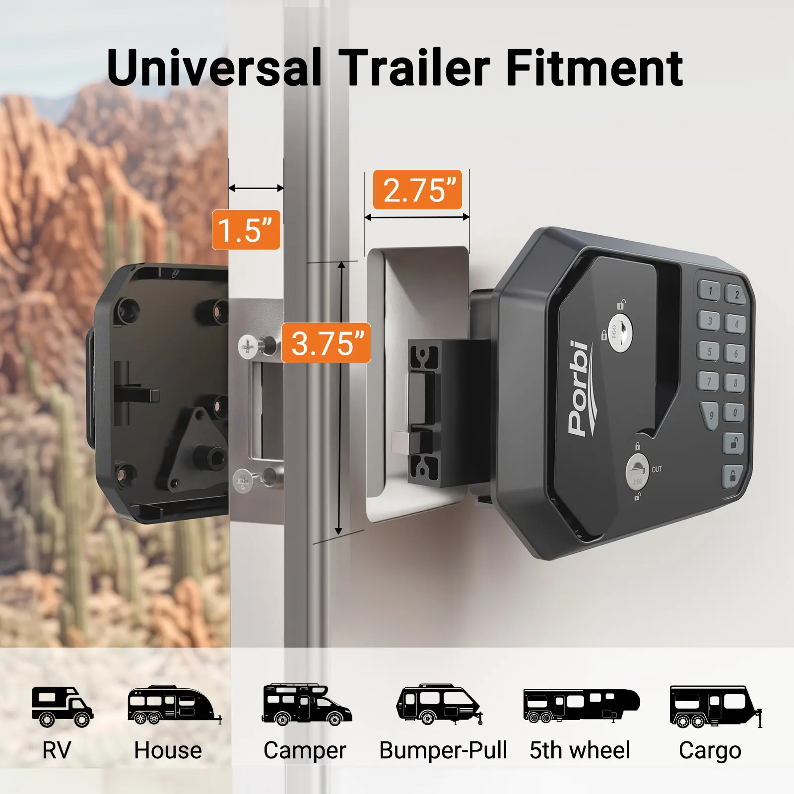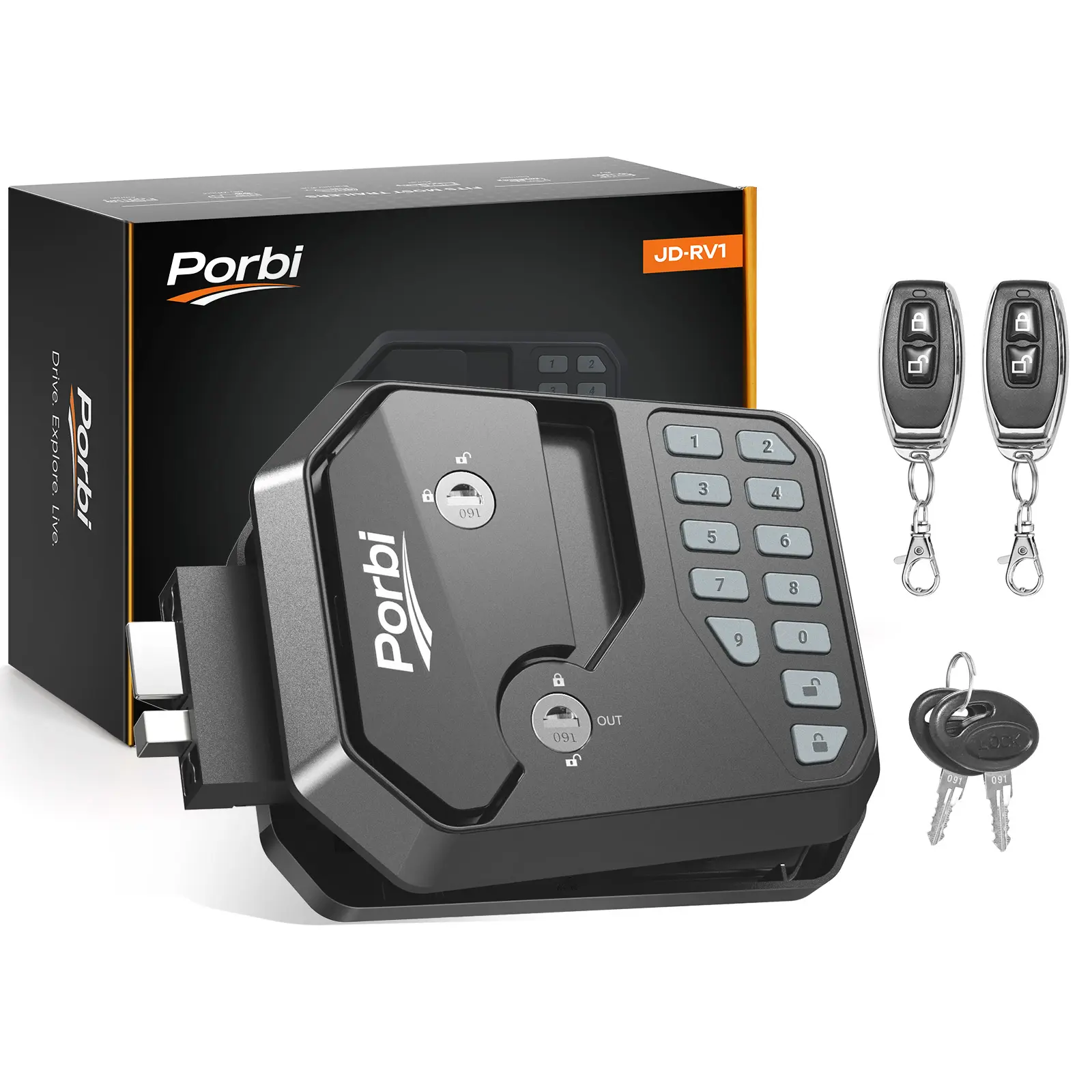 Porbi RV Door Lock Replacement with 12-Digit Keypad Dual-Door Remote Control & Backup Key Durable Waterproof Design for Secure Travel JD-RV1