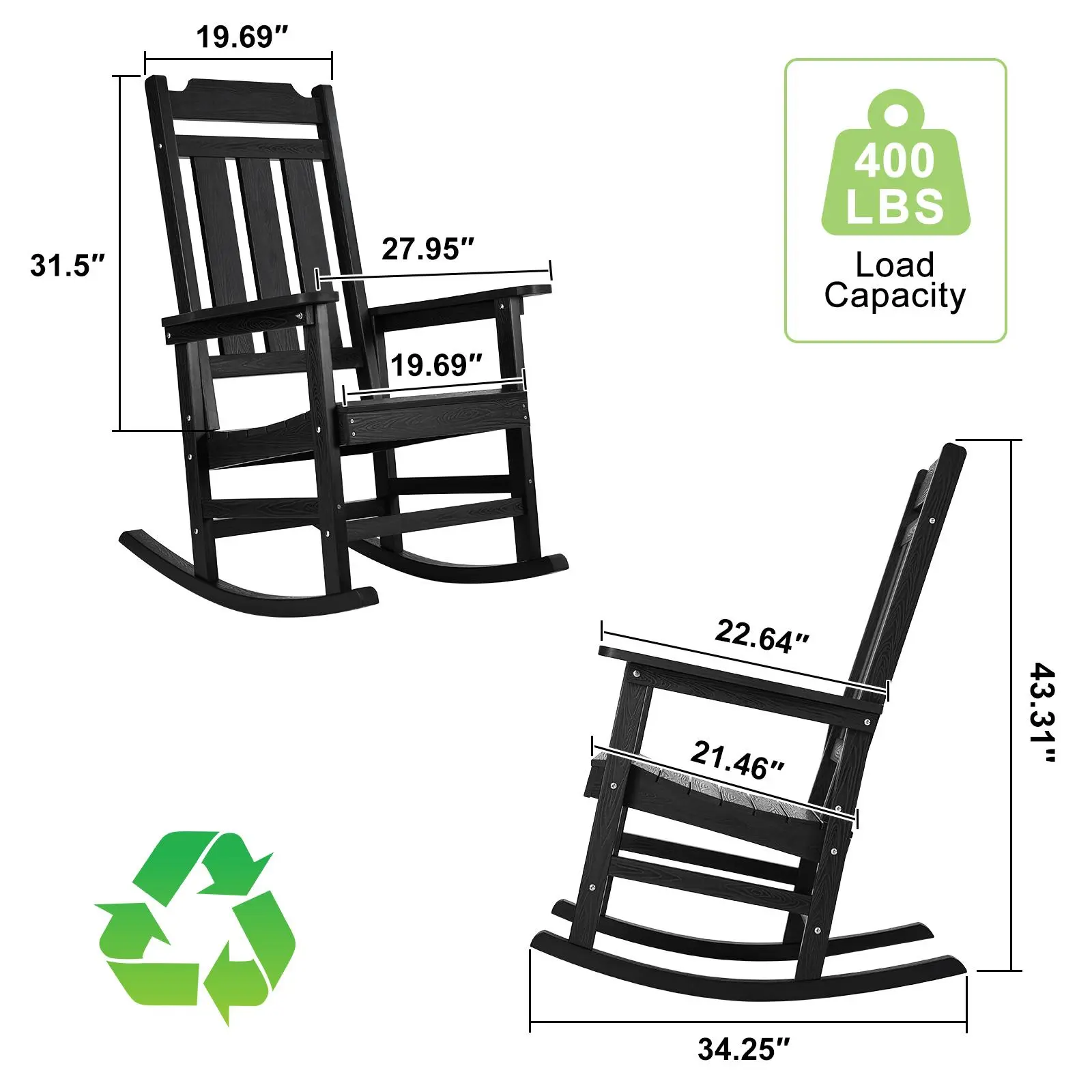 • Sturdy and Durable Material: This porch rocker is made from high-density polystyrene (HIPS) material, providing solid construction with enhanced impact resistance and stability. It supports up to 400 lbs, suitable for various body types. The material resists deformation, fading, and weather conditions, ensuring long-lasting use.