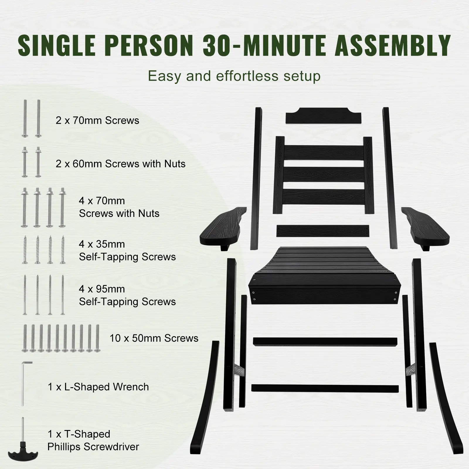 • Sturdy and Durable Material: This porch rocker is made from high-density polystyrene (HIPS) material, providing solid construction with enhanced impact resistance and stability. It supports up to 400 lbs, suitable for various body types. The material resists deformation, fading, and weather conditions, ensuring long-lasting use.