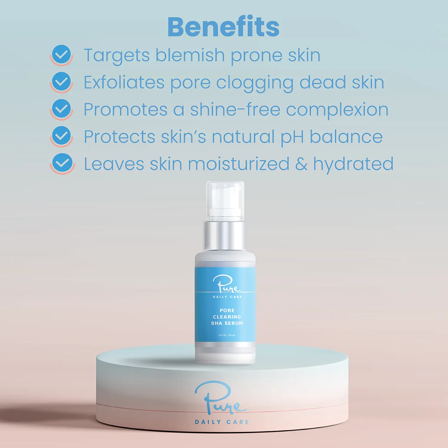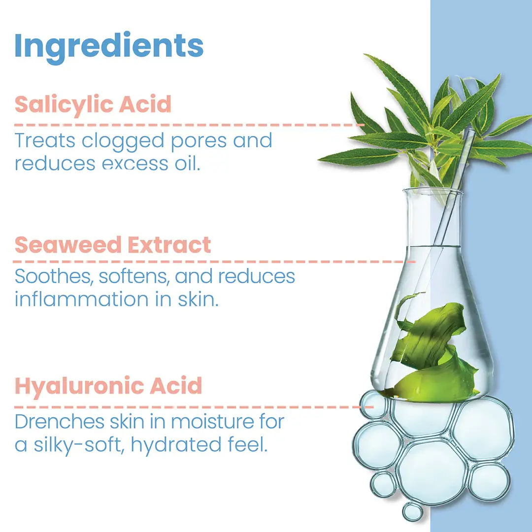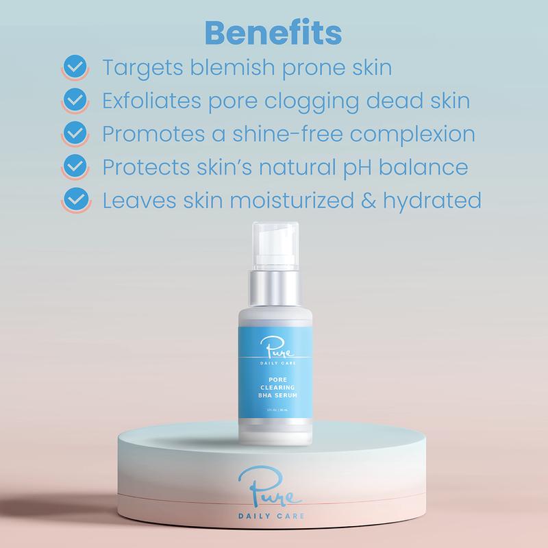 What It Does: Pore Clearing BHA Serum penetrates deep into the pores to loosen dead skin, treat clogged pores and reduce excess oil. Seaweed Extract and Hyaluronic Acid provide moisturizing and anti-inflammation benefits to protect & plump skin.
