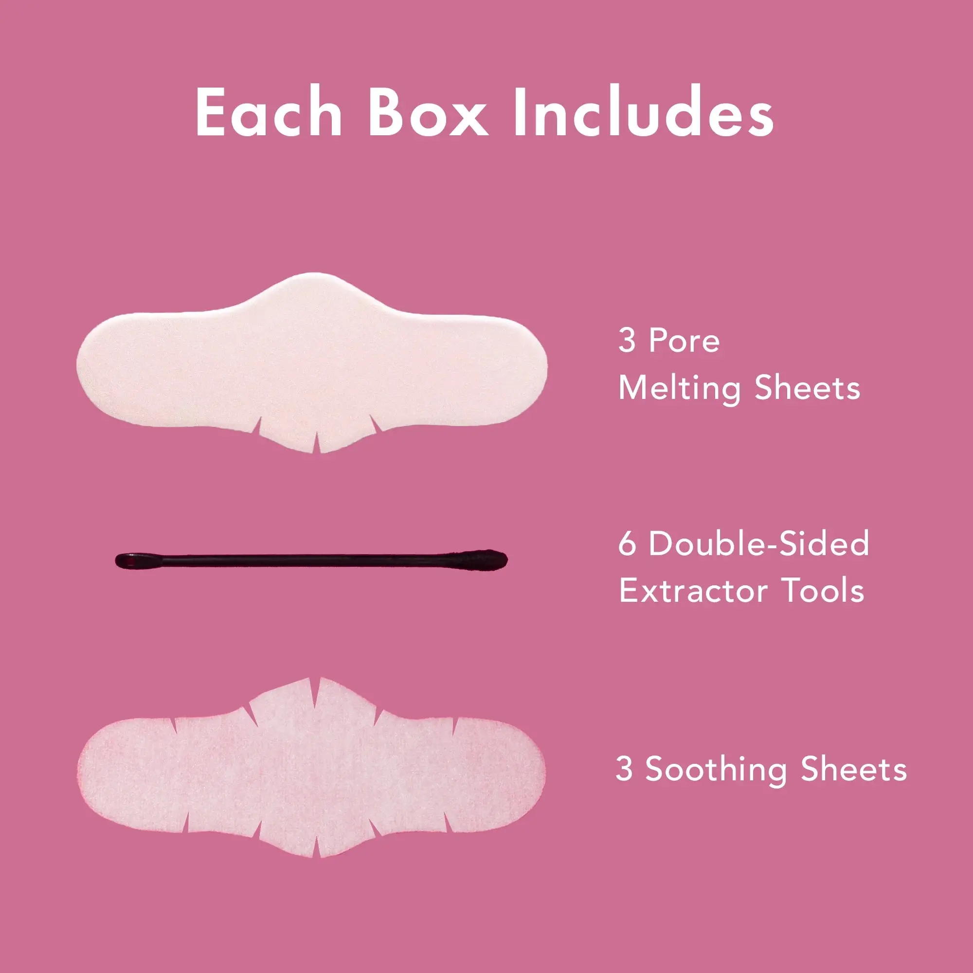 Unlike traditional nose strips that can damage skin, the 3-Step Pore Melting Pack utilizes Salicylic Acid, Witch Hazel and Jeju Mugwort Extract to soften and gently melt away blackheads. After applying the hydrogel Pore Melting Sheet, use the Double-Sided Tool to gently extract loosened debris and the cotton swab will easily wipe away excess oil and congestion. Follow with the Soothing Sheet to reduce any lingering redness and tighten the look of pores. This revolutionary treatment dissolves blackheads, minimizes the appearance of pores, and soothes skin to reduce the appearance of redness. Dermatologist tested.