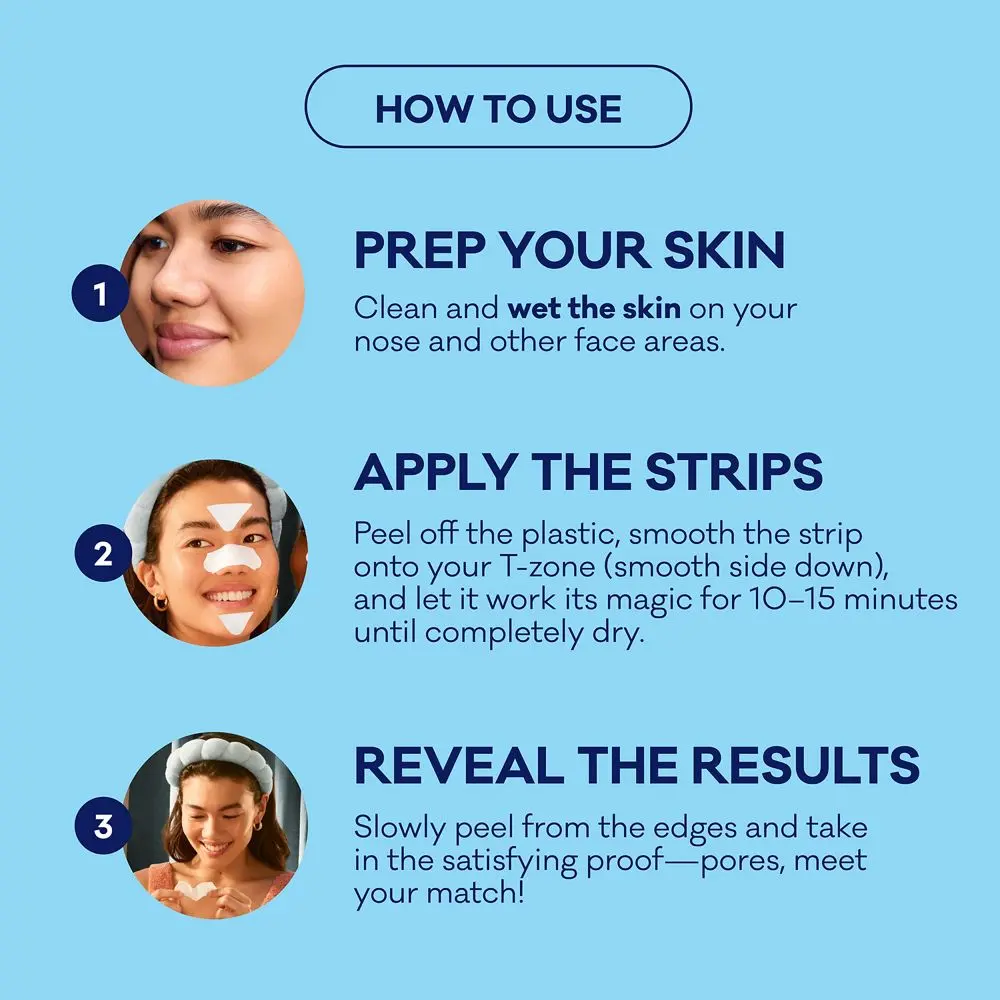 ·Peel strip off plastic and apply to nose with the smooth side of the pore strip down.