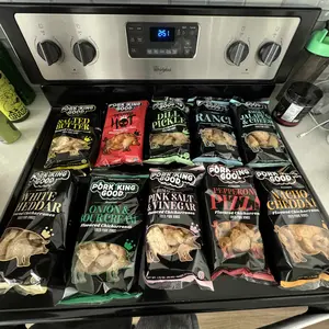 After trying the dessert pork kings these weren't special at all. Very bland not enough flavor, just tasted like original pork rinds to me. The butter one was okay. They all got combined in a big bag for pork crumbs for my chicken nuggets. So i will get some use out of them. Wouldn't buy again.