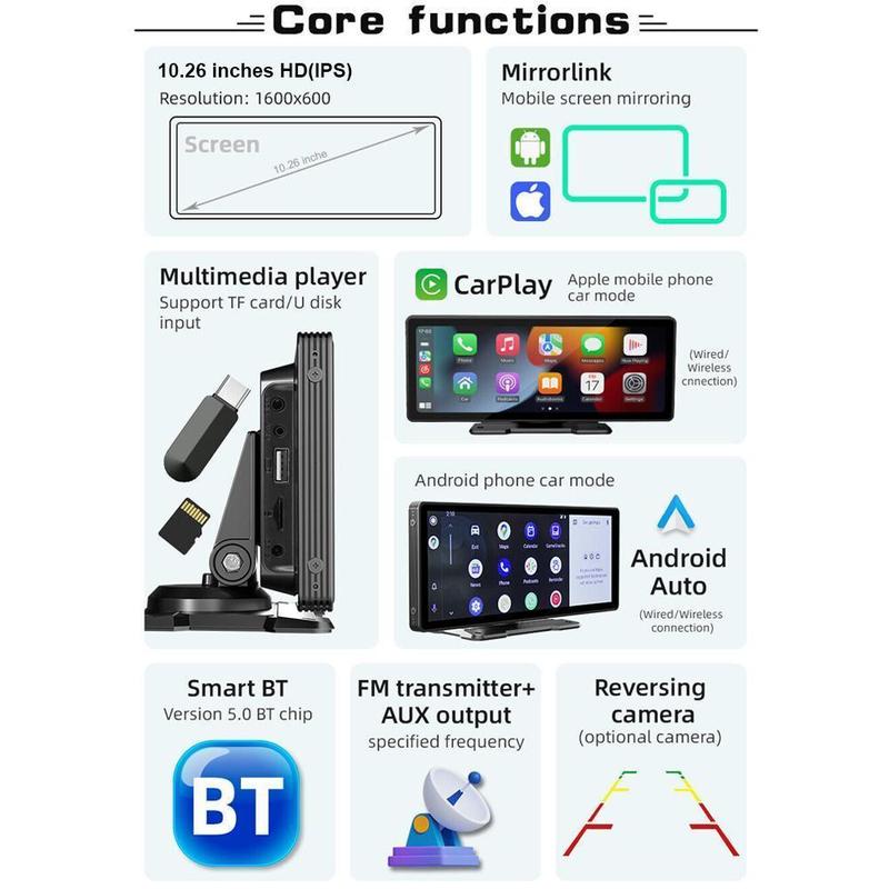 ·IMMERSIVE 10.26 INCH HD DISPLAY: Picture this: a VIVID 10.26-inch screen in your car. Giving you the perfect size to ensure you can see what's going on the screen CLEARLY without clogging up your interior.