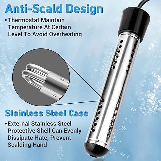 Works great! Comes with very user friendly instructions. Heats up a large bucket of water in 15 to 20 minutes. Heats up full bath tub in 2 hours. My electricity bill did not go up. So I don't think it uses that much power.