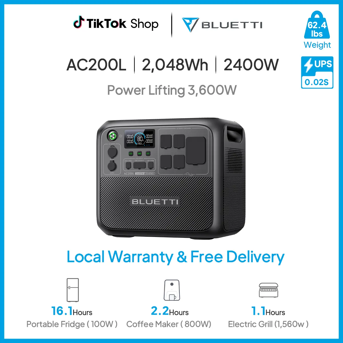 Enjoy a 5-Year Warranty with local shipping. Combo items ship separately. Stay powered with BLUETTI AC200L!