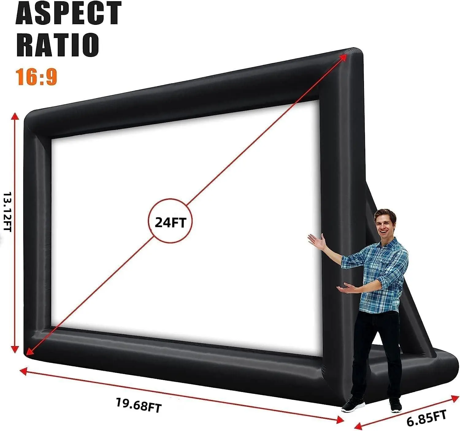 Wide Application: Our 24FT inflatable projector screen is ideal for both indoor and outdoor use, such as poolside, garden, weddings, festive events,football games and parties. You can enjoy a fantastic night with people in the garden, the beach, or have a field-proven performance in Class 2 wilderness areas , withstanding 20° slope deployments and 65% humidity variance