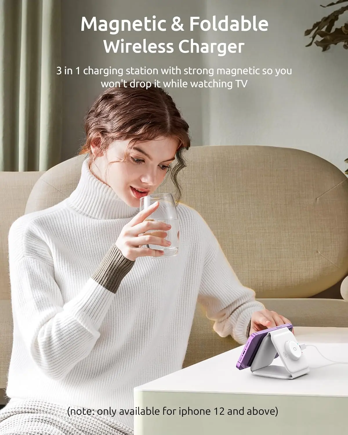 Ever juggle multiple Apple devices and dread the cable chaos? This 3 in 1 wireless charger is your clutter-free lifesaver. Designed specifically for iPhone 12 through 16, AirPods, and Apple Watch, it lets you power up all your essentials simultaneously without fumbling with cords. The magnetic foldable design means it folds flat for easy packing or stacks up for extra power, making it a perfect travel companion.