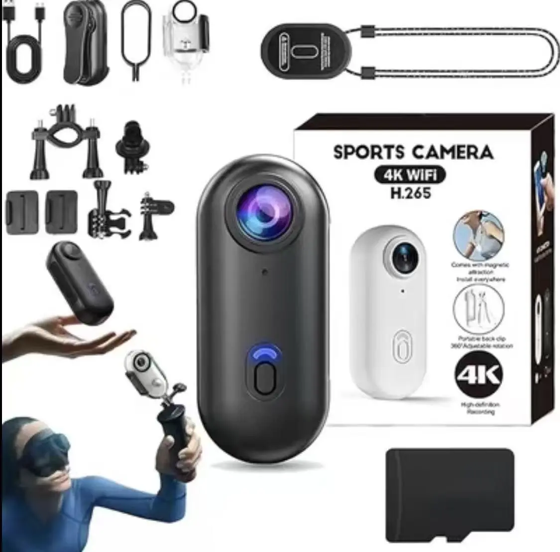 ·Standard Package: 1 128GB memory card, 1 portable camera, 1 magnetic pendant, 1 safety rope, 1 portable rear clip, 1 USB data cable, 1 waterproof set, 1 set of cycling accessory parts, 1 set of car accessory parts.