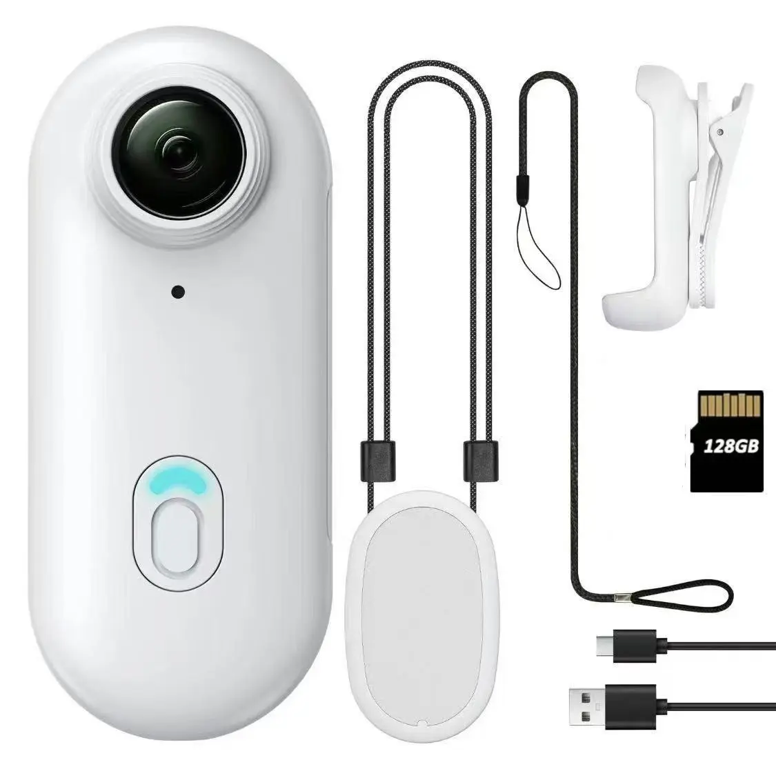 ·Basic Package: 1 128GB memory card, 1 portable camera, 1 magnetic pendant, 1 safety rope, 1 portable rear clip, 1 USB data cable.