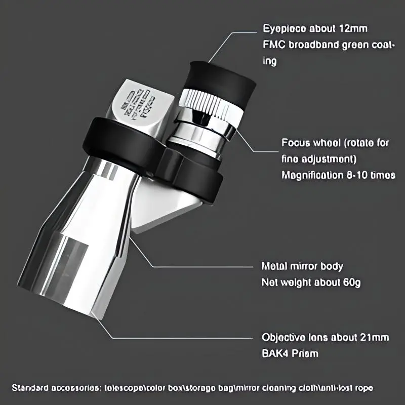 The 8x20mm Portable High-Zoom Monocular Telescope is perfect for various outdoor activities. It features waterproof and fogproof capabilities, ensuring clear visibility. Ideal for hunting, hiking, and bird watching, this telescope offers a high-zoom experience. Its portable design makes it easy to carry wherever you go.