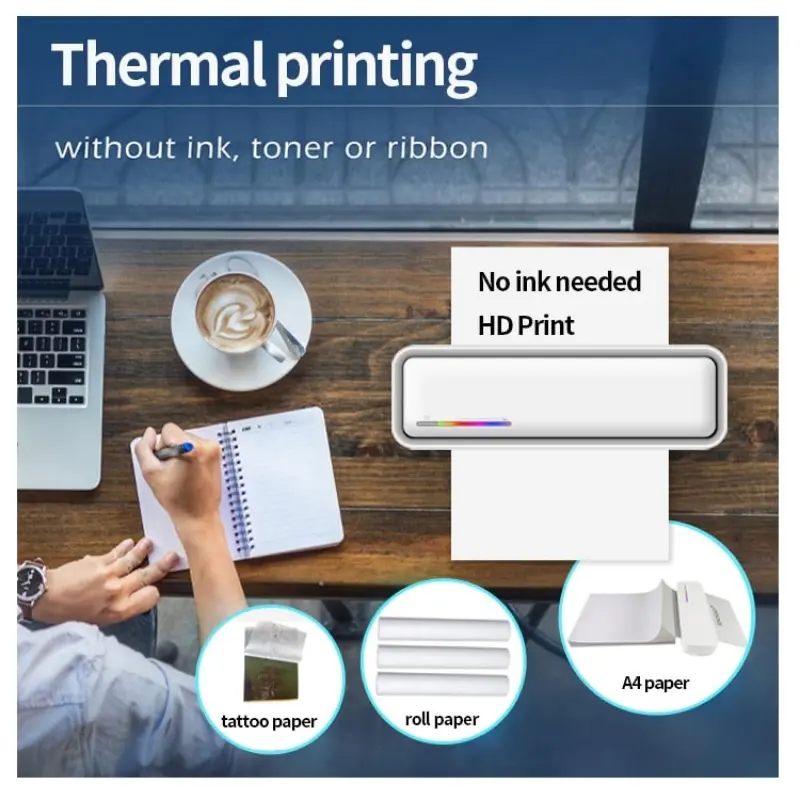 Portable A4 Thermal Printer, Battery-Powered Wireless Printer (Battery Not Included) Supporting Mobile BT and PC Printing, Smart Printer for Home, School and Office, Valentine's Day Gift