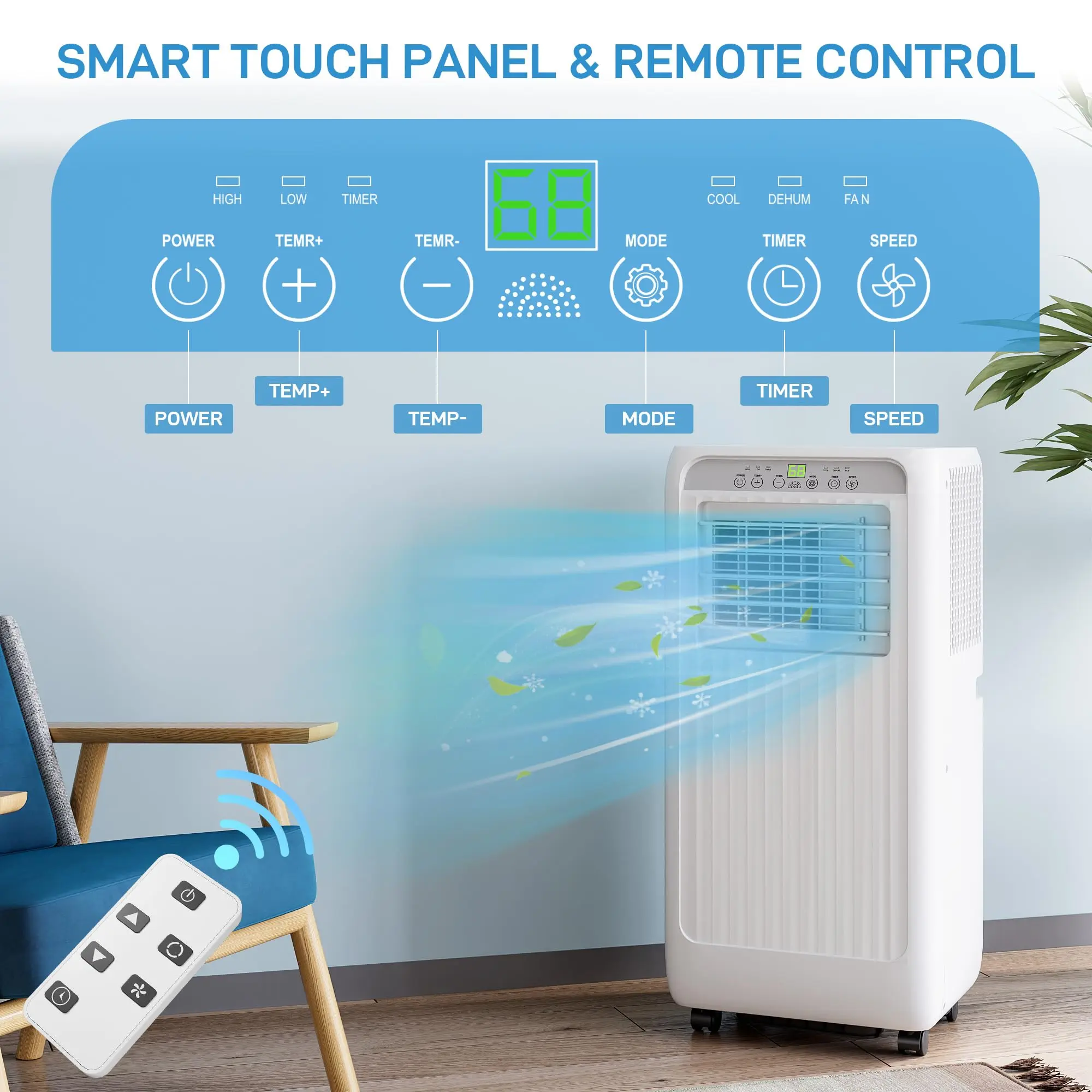 GARVEE Portable AC/Dehumidifier & Fan - 3-In-1, 10000 BTU 115V~, Suitable for 350-450 Sq. Ft