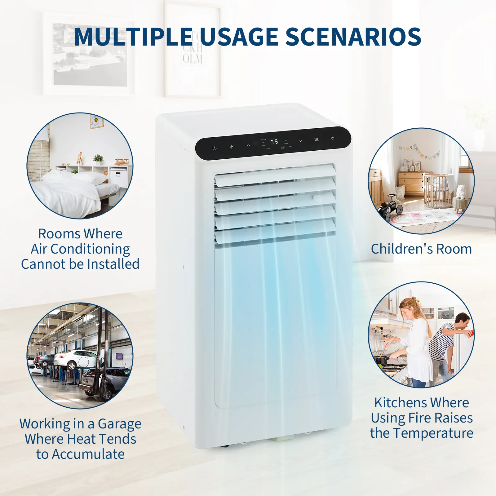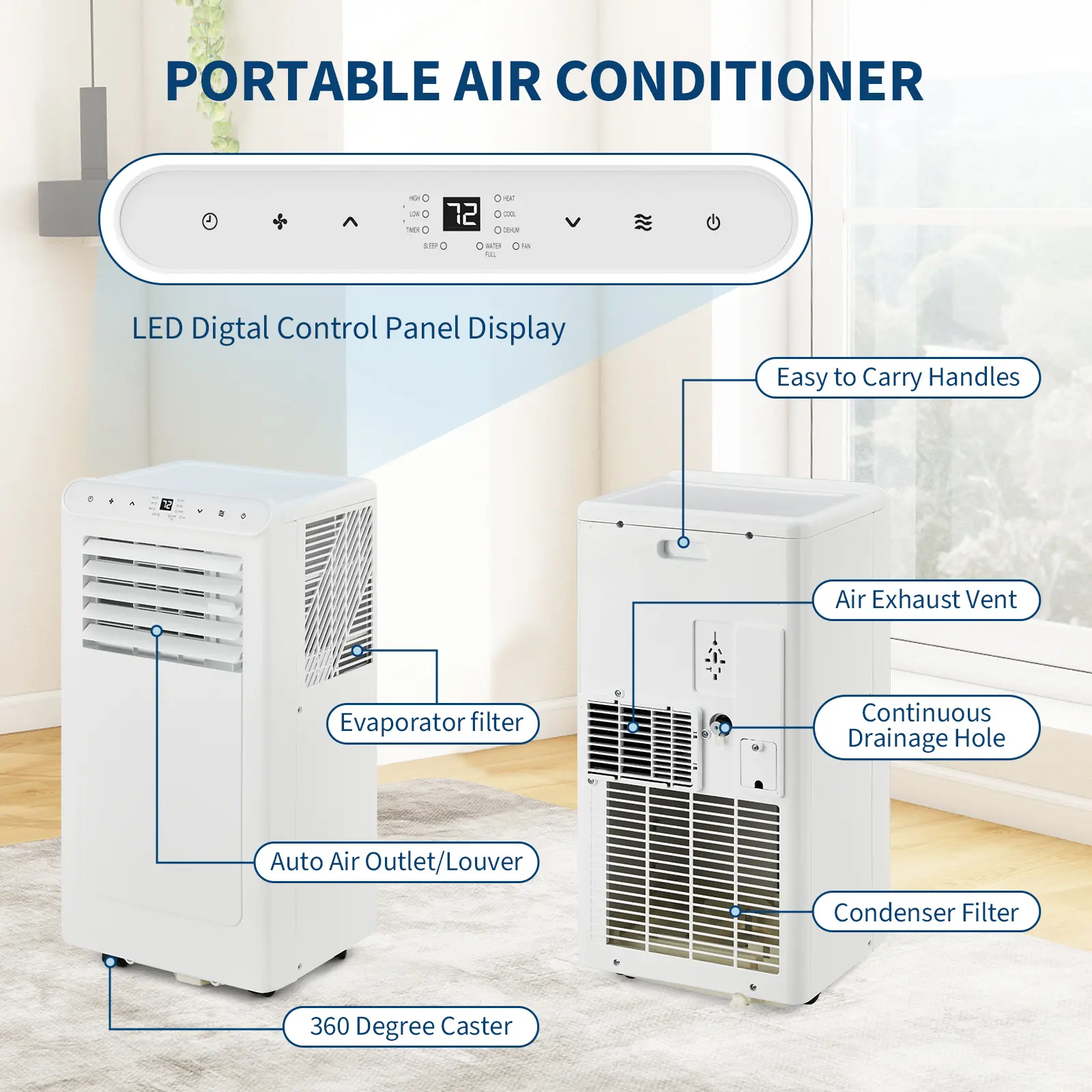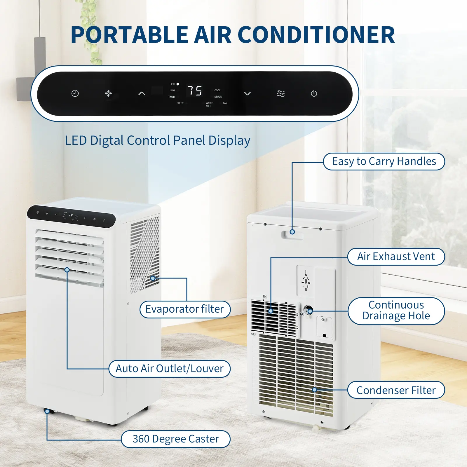 ·2.ALL 3-IN-1 DESIGN: This portable air conditioner combines air conditioning, fan, and dehumidifier functions, allowing you to easily transition between cooling, air circulation, and humidity control to maximize comfort in any space