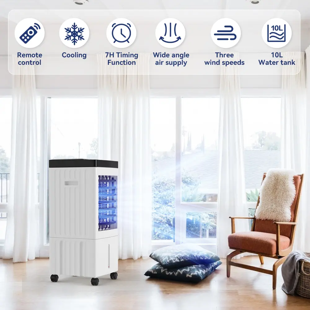Great budget-friendly cooler for small rooms! It’s lightweight, easy to move around, and the 10L tank lasts a good while. I love the remote control and the cool breeze it gives with ice. Not as strong as an AC, but it definitely helps in hot weather. Worth it for the price!