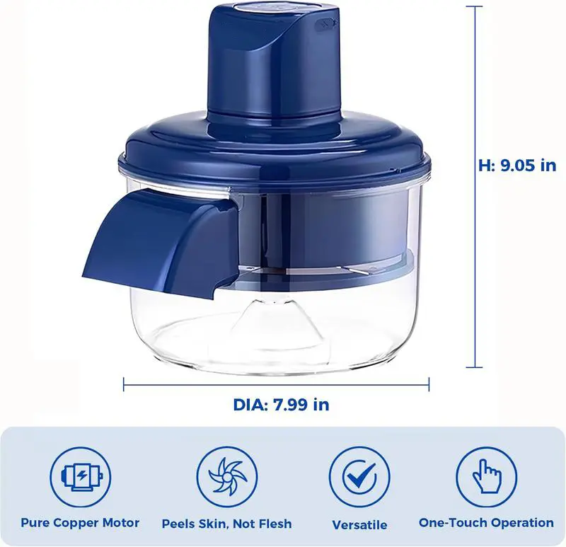Constructed with food-grade plastic housing and a stainless steel cutting system, the automatic peeler ensures safe, hygienic food preparation. Specifically designed for easy operation, it suits culinary beginners, busy parents, and health-conscious individuals.