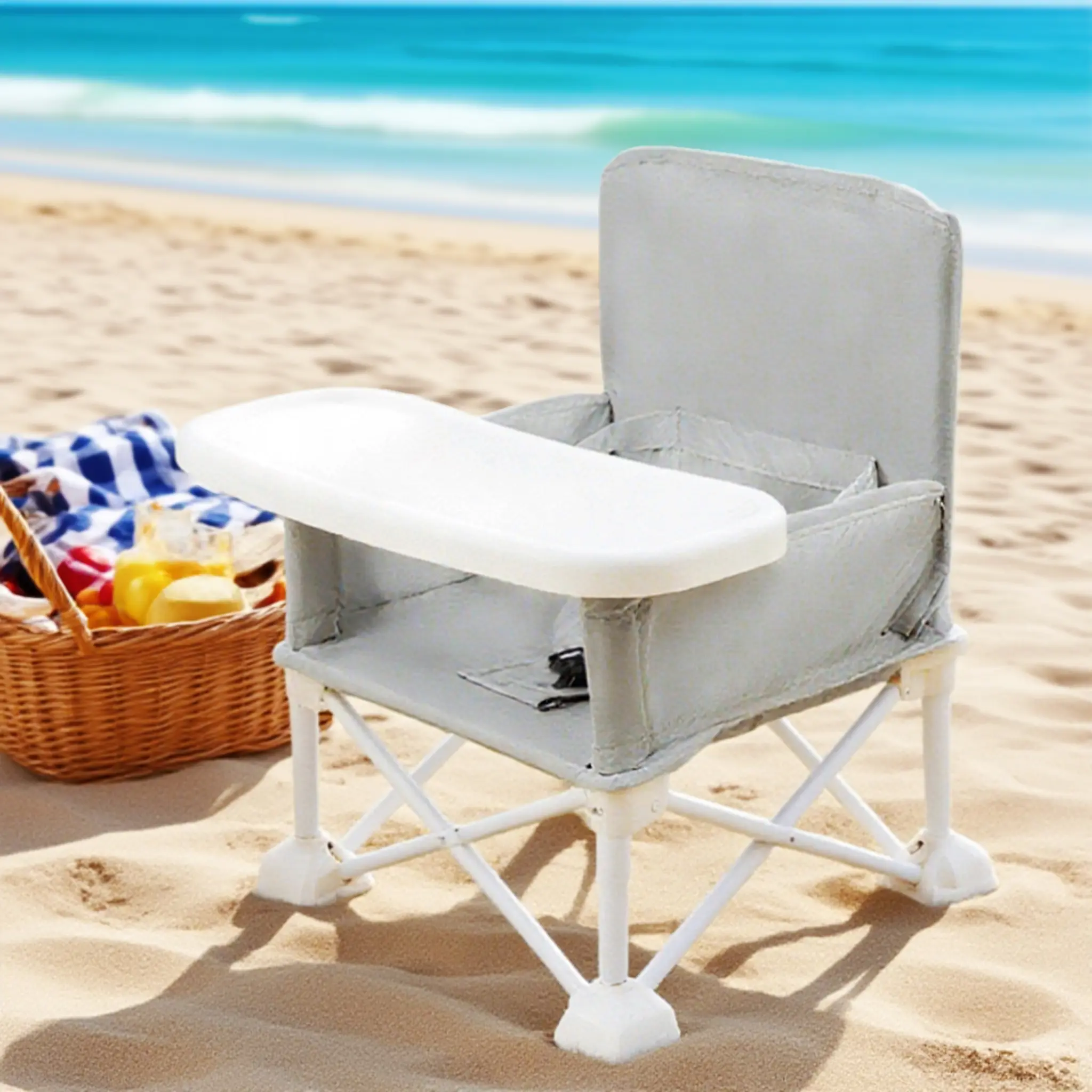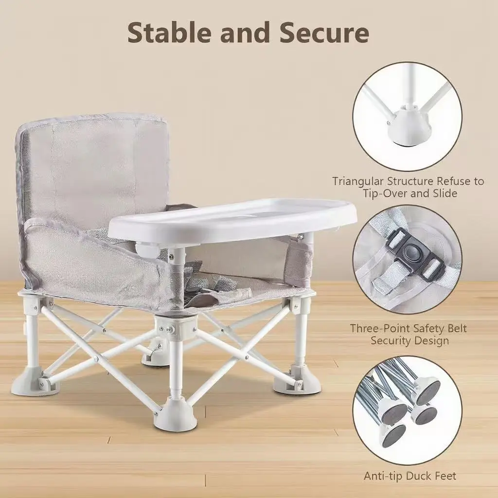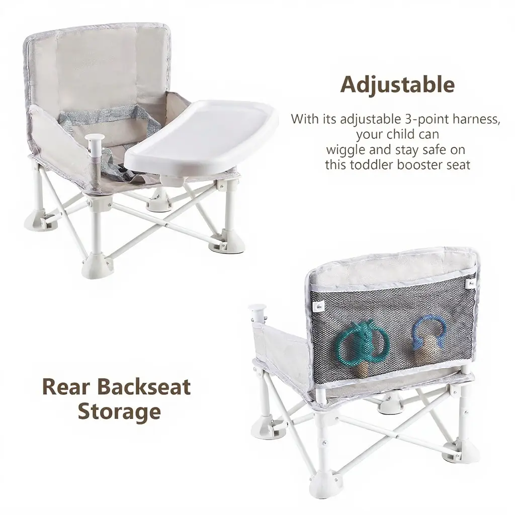 Designed for stability, this booster seat features a wide base and removable "duck feet" to prevent tipping on any surface—whether it's grass, sand, or uneven ground. Perfect for outdoor activities like beach trips, picnics, or camping.