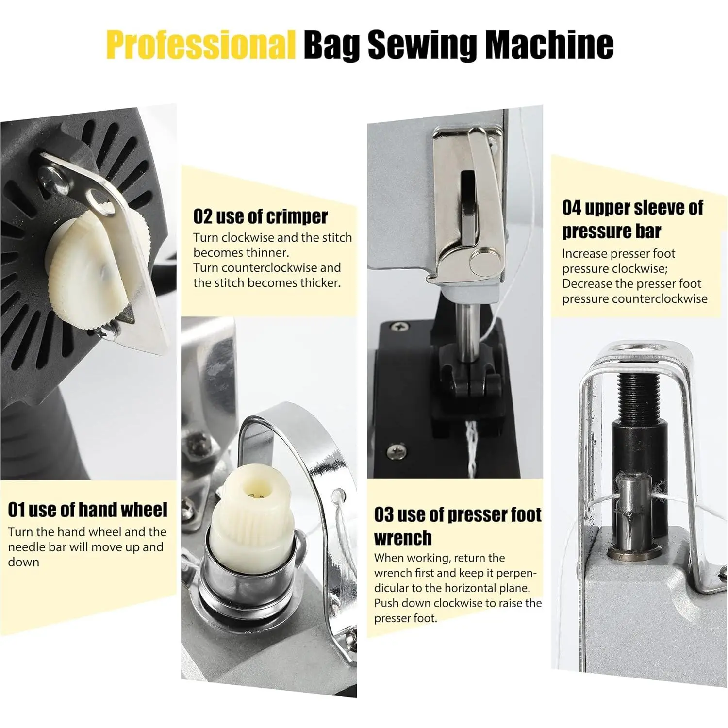 Copper Core : The bag sewing machine adopts an -copper . 190W higher power, 18000 rpm speed, making sewing work efficient. We have tried our to reduce the noise generated during operation, but due to the high speed of the , noise is unavoidable.