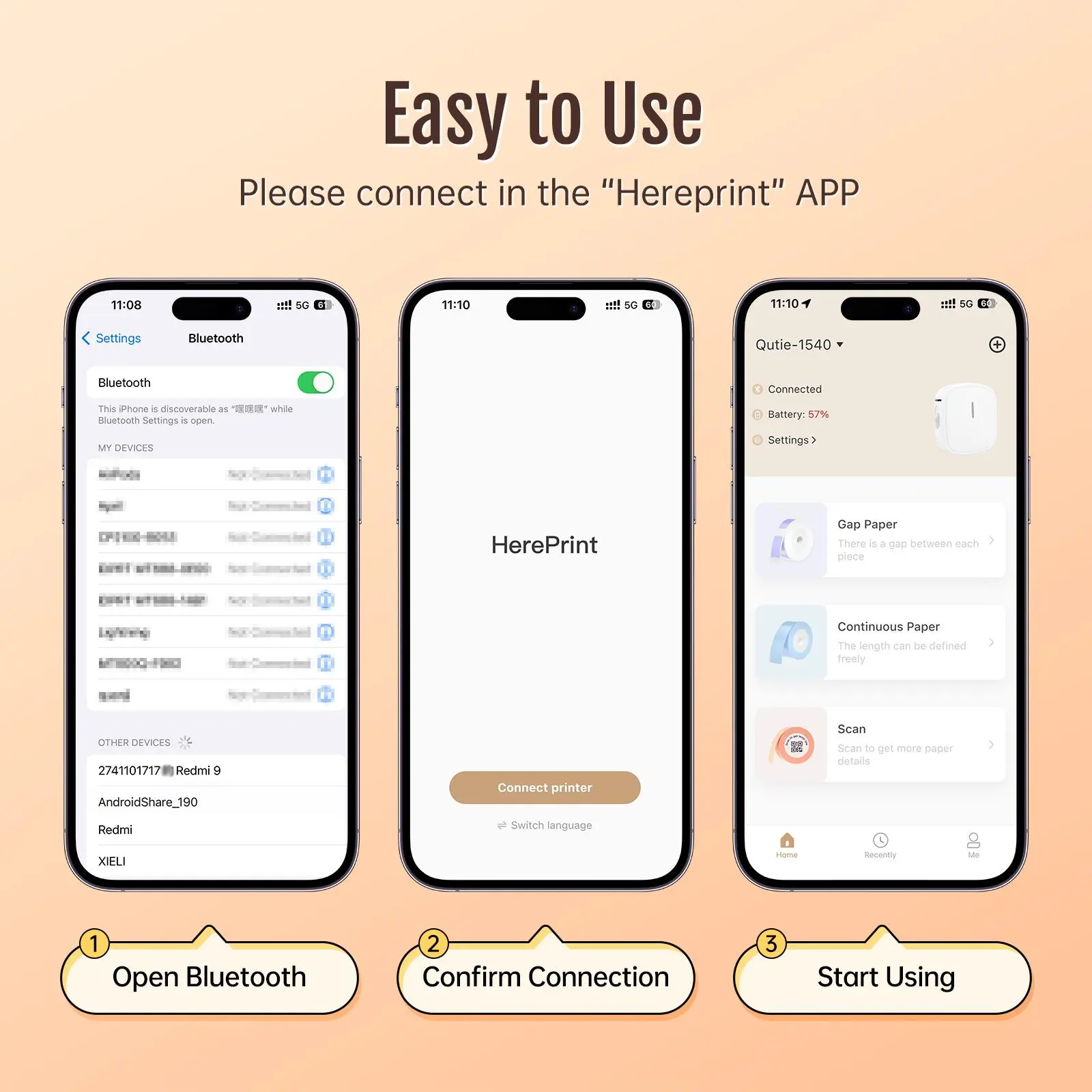Pocket-size design — only 8.5 × 8.5 × 2.8 cm Fits in your palm and bag easily Built-in lithium battery, up to 30 m continuous printing Lightweight, portable, no bulky machines