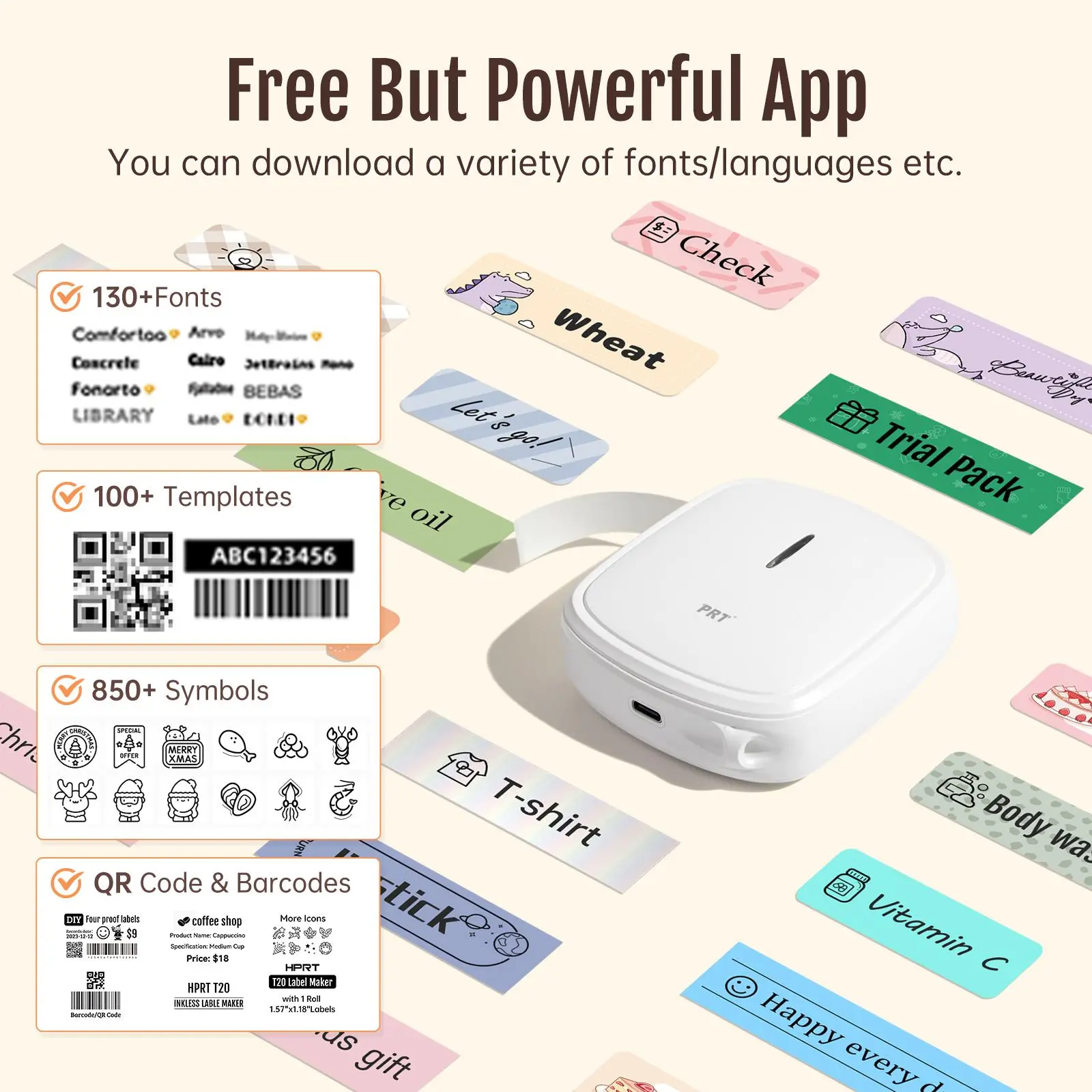 Portable Bluetooth Label Maker, Mini Inkless Sticker Printer with Cutter for Home & Office