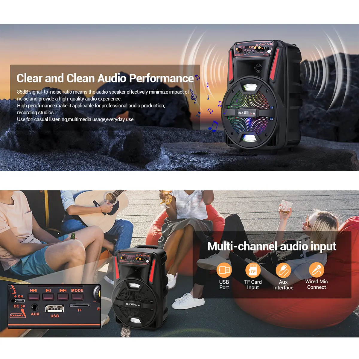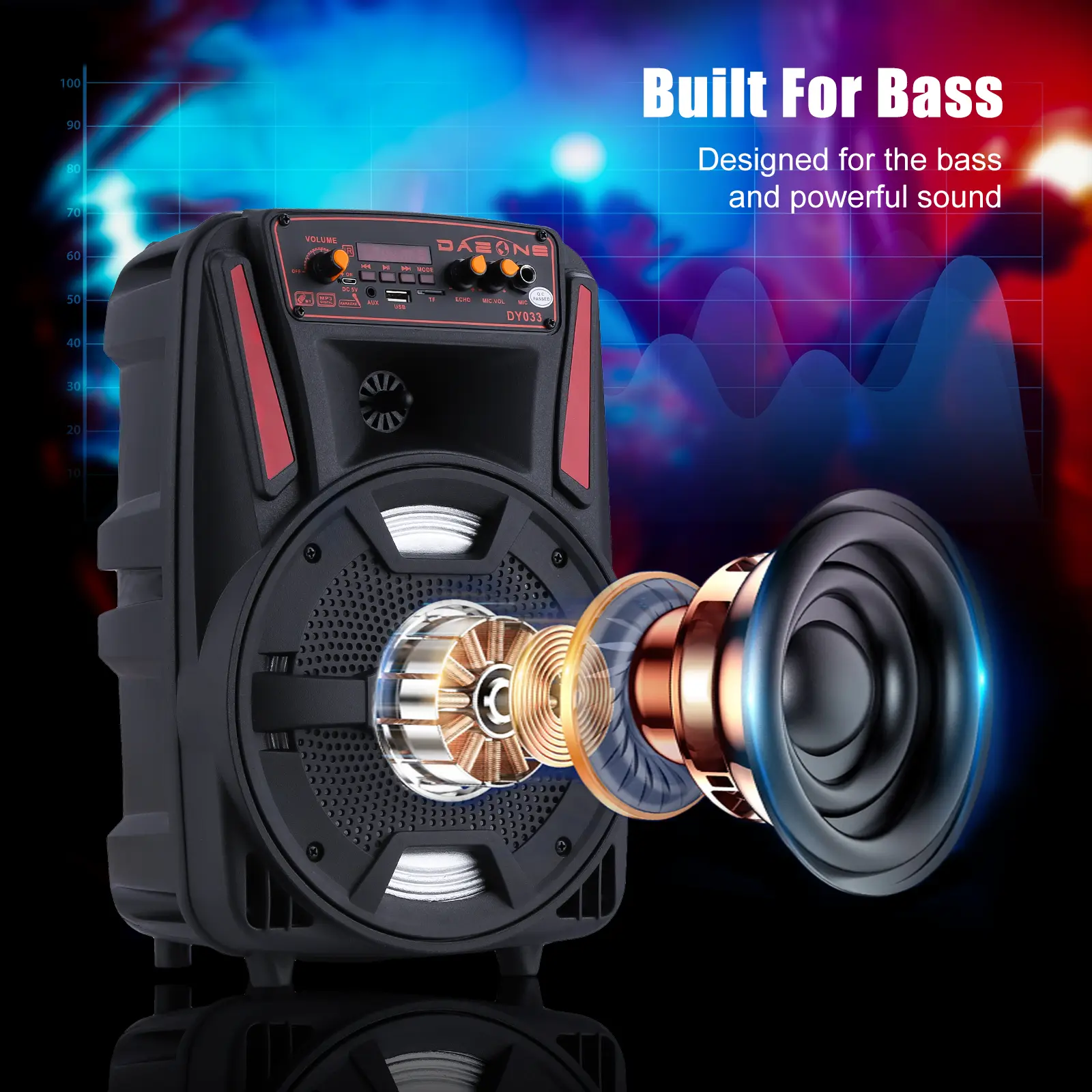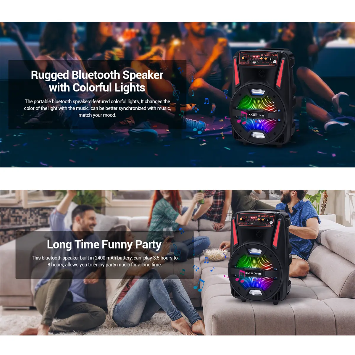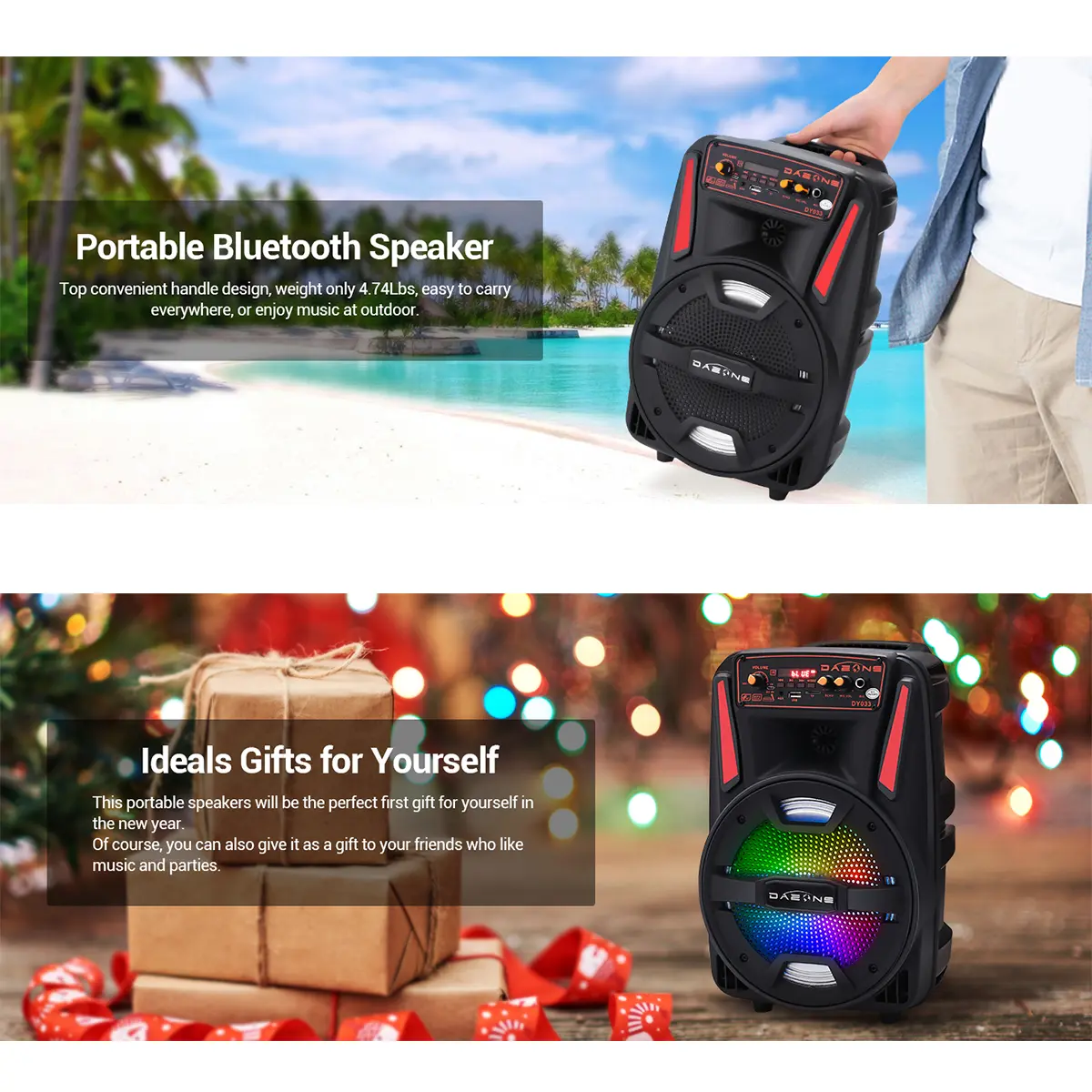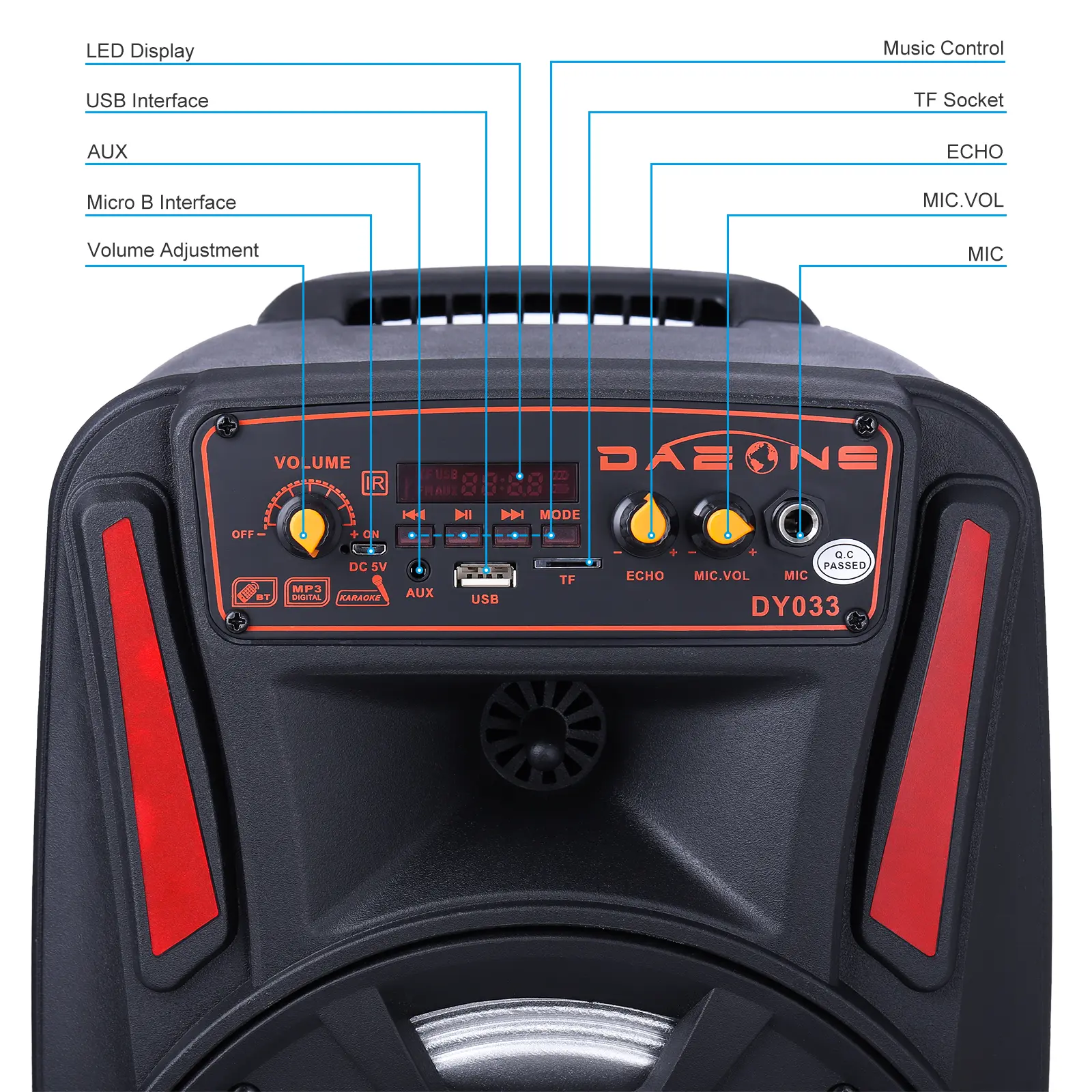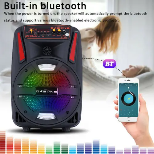 Imagine taking your party anywhere with a powerful sound system that fits in your hand! This portable Bluetooth PA speaker features an 8-inch subwoofer that pumps out deep bass and crisp audio, perfect for backyard gatherings, karaoke nights, or casual listening. With Bluetooth 2.1 + EDR, you can wirelessly connect your phone or tablet up to 10 meters away. The built-in 2400mAh rechargeable battery keeps the music going for about 3 hours on a single charge, while the included microphone and remote control make singing along a breeze. Color-changing LED lights add a fun visual vibe that syncs with your tunes. Plus, its trolley design with an extended handle and wheels means you can roll it anywhere without breaking a sweat. Inside the box, you get the 8" tailgate speaker, charging cable, manual, and remote control—all ready to rock your next event. Whether you’re a music lover or party enthusiast, this speaker is your go-to for portable, high-quality sound. Grab yours today and let the good times roll!