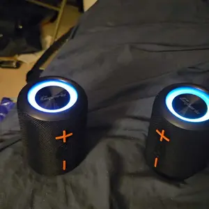 โจEnhanced User Experience: Built-in high-definition noise-canceling microphone for hands-free calling , dazzling lighting effects that sync with music, and easy-to-use button controls. A comprehensive audio solution for every occasionโwhether itโs a patio hangout, dadโs golf tripโณ , or a teenโs birthday party!