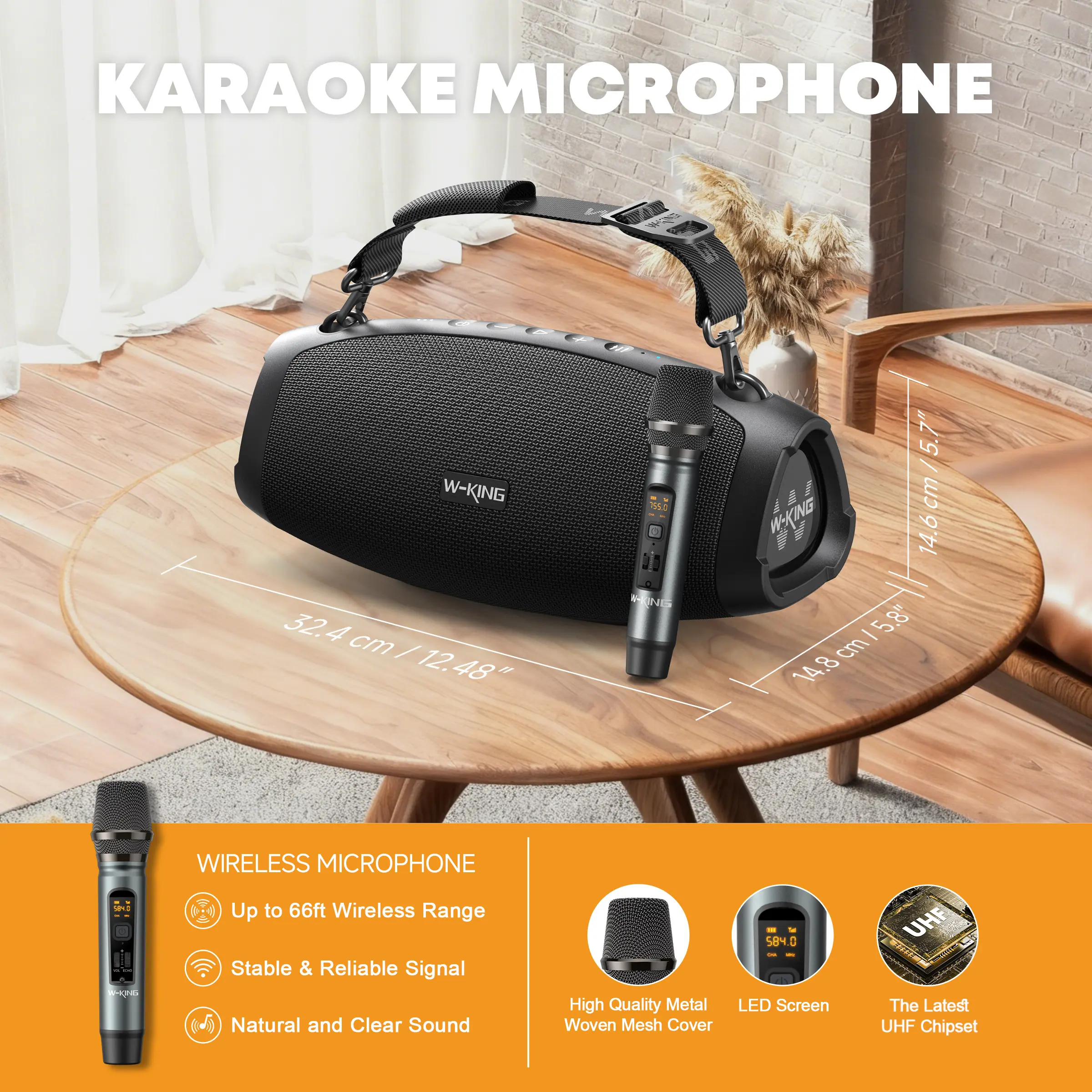 ·WIRELESS MICROPHONE: The newly upgraded X10 is paired with the rechargeable wireless microphone specially designed by W-KING, An unparalleled music feast is coming. The microphone is made of aviation profile aluminum tube, and imported dynamic high-sensitivity microphone core.In addition, with the unique UHF wireless technology of the microphone. The microphone has its own reverberation, which can be adjusted independently. Wonderful for various parties, concerts, conference speeches, camping, etc.