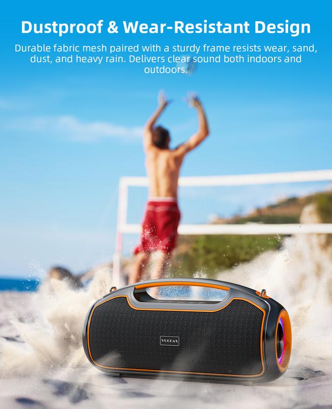 Imagine taking your favorite tunes anywhere—whether it's a beach day, backyard BBQ, or camping trip. This portable Bluetooth speaker delivers booming 200W peak sound with deep bass thanks to dual 40W woofers and DSP bass boost. Its IP65 waterproof and dustproof design means it can handle splashes and dirt without missing a beat. With a hefty 12,000mAh battery, enjoy up to 24 hours of nonstop music, plus fast charging to get you back in the groove quickly. Connect effortlessly via Bluetooth or use USB, AUX, TF, or Type-C ports for versatile compatibility. The dynamic rhythm lights add a cool visual vibe, while the echo effect spices up your microphone moments. Sync multiple speakers for a larger soundstage and turn any gathering into a party. In the box, you'll get the speaker, charging cable, and user manual. Ready to amp up your outdoor fun? Grab this speaker and let the good times roll!