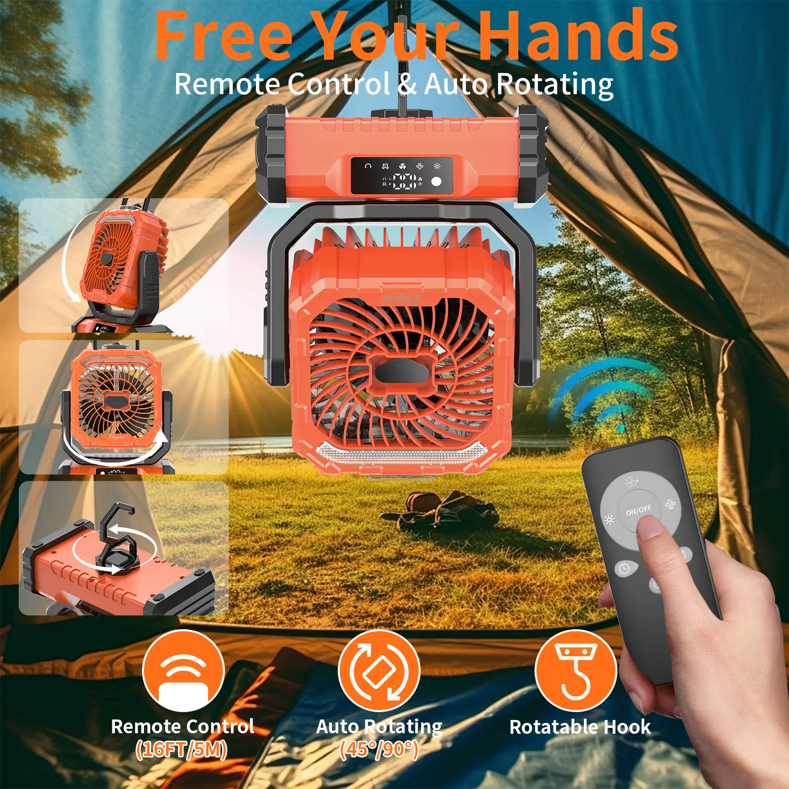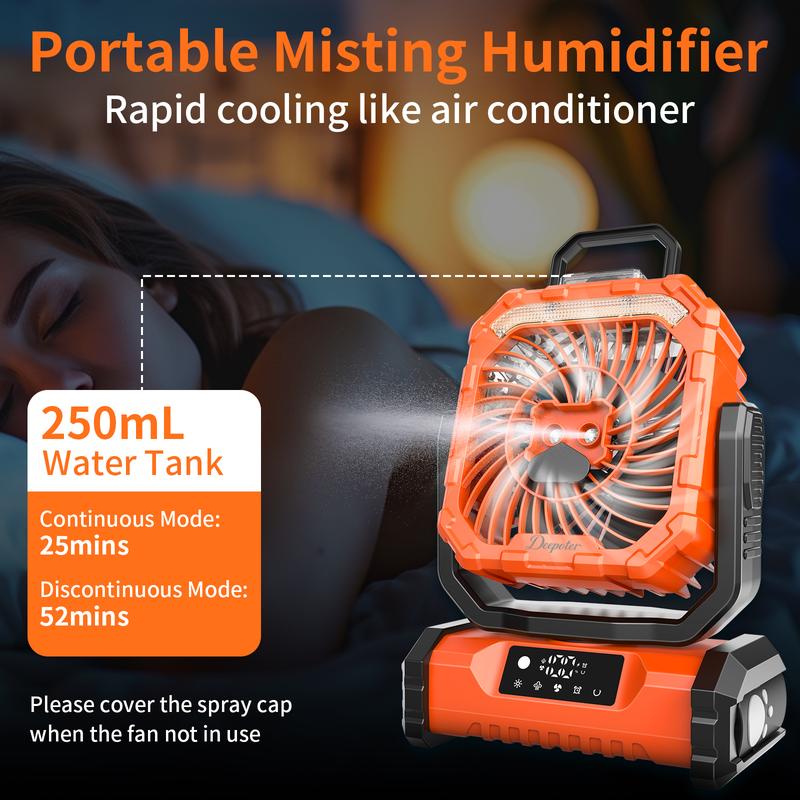 ·【Ultra bright LED lights and remote control function】The camping fan is designed with LED camping lights and convenient remote control function, with multiple light colors. The LED camping lights are an ideal light source for outdoor night activities such as barbecue, picnic, walking, fishing, etc. In addition, we have also configured a remote control for you, which can be remotely operated. Our camping fan has powerful airflow that can cool the air and keep it cool. Rechargeable wireless portable fans are one of the best choices for camping enthusiasts.